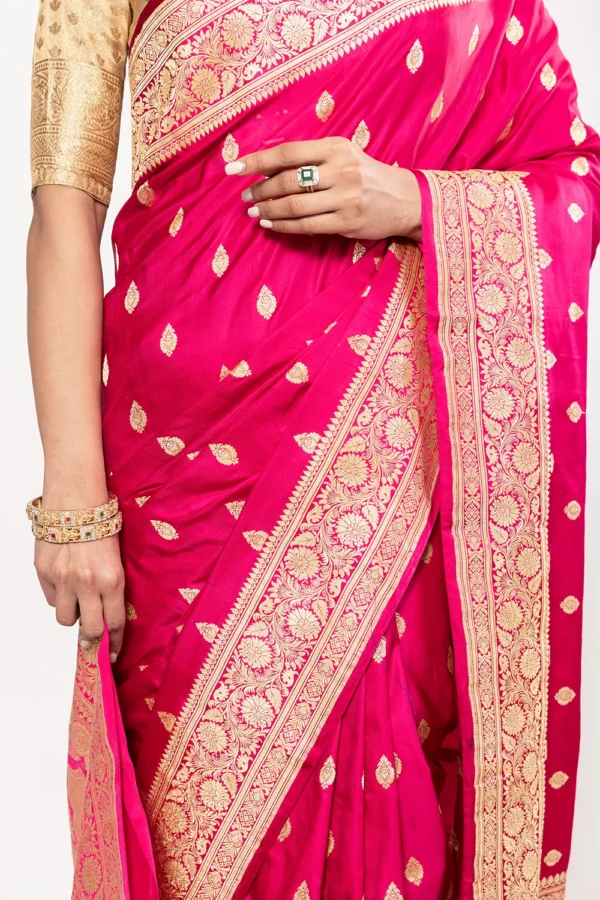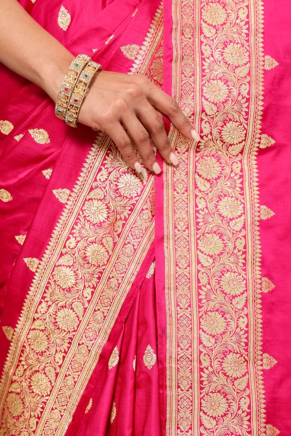 Vivid Pink Pure Banarasi Silk Saree