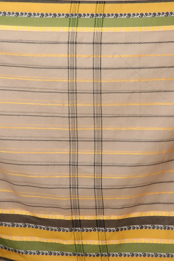 Wear That Elegance With The Beige Cotton Handloom Saree, Made Of Pure Cotton. This Saree Symbolises The Non-Handwoven Cotton Kalakhetra, Which Venerates The History Of Fulia, West Bengal.
