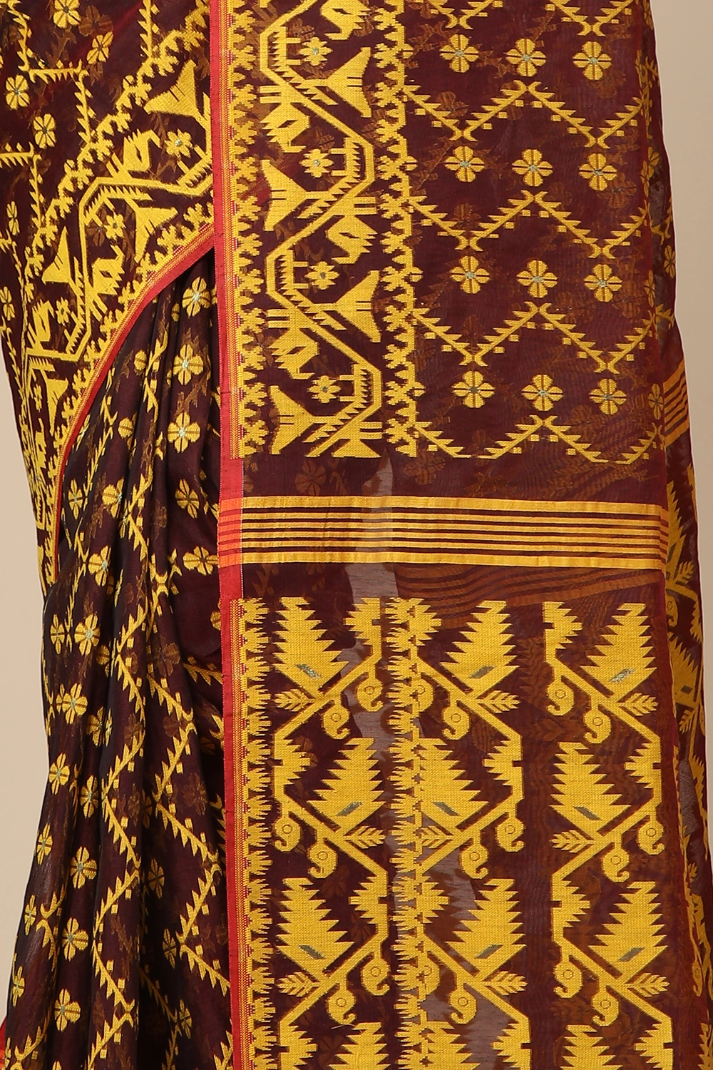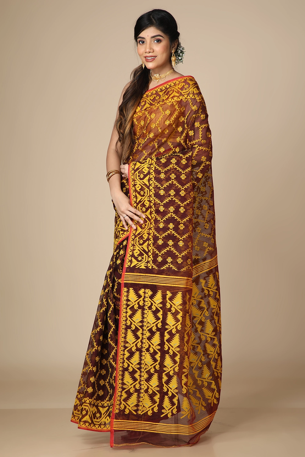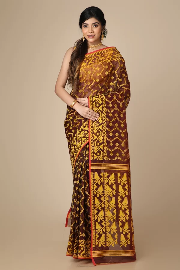 Wine Dhakai Jamdani Saree
