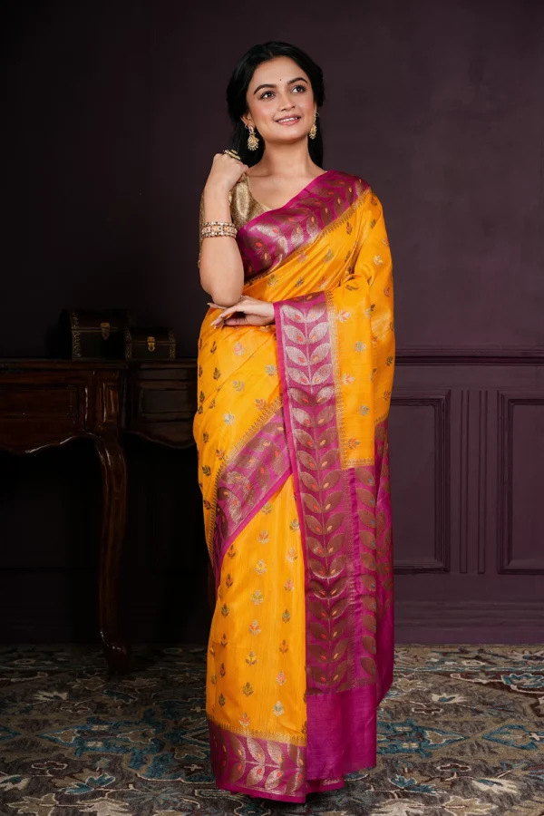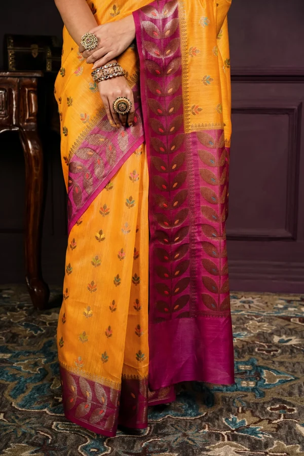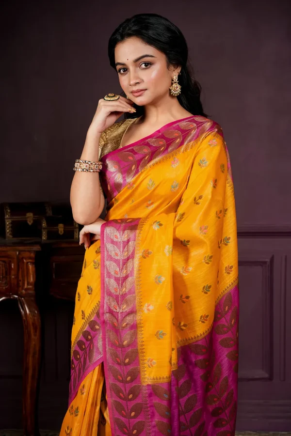 Amber Orange Pure Tussar Saree