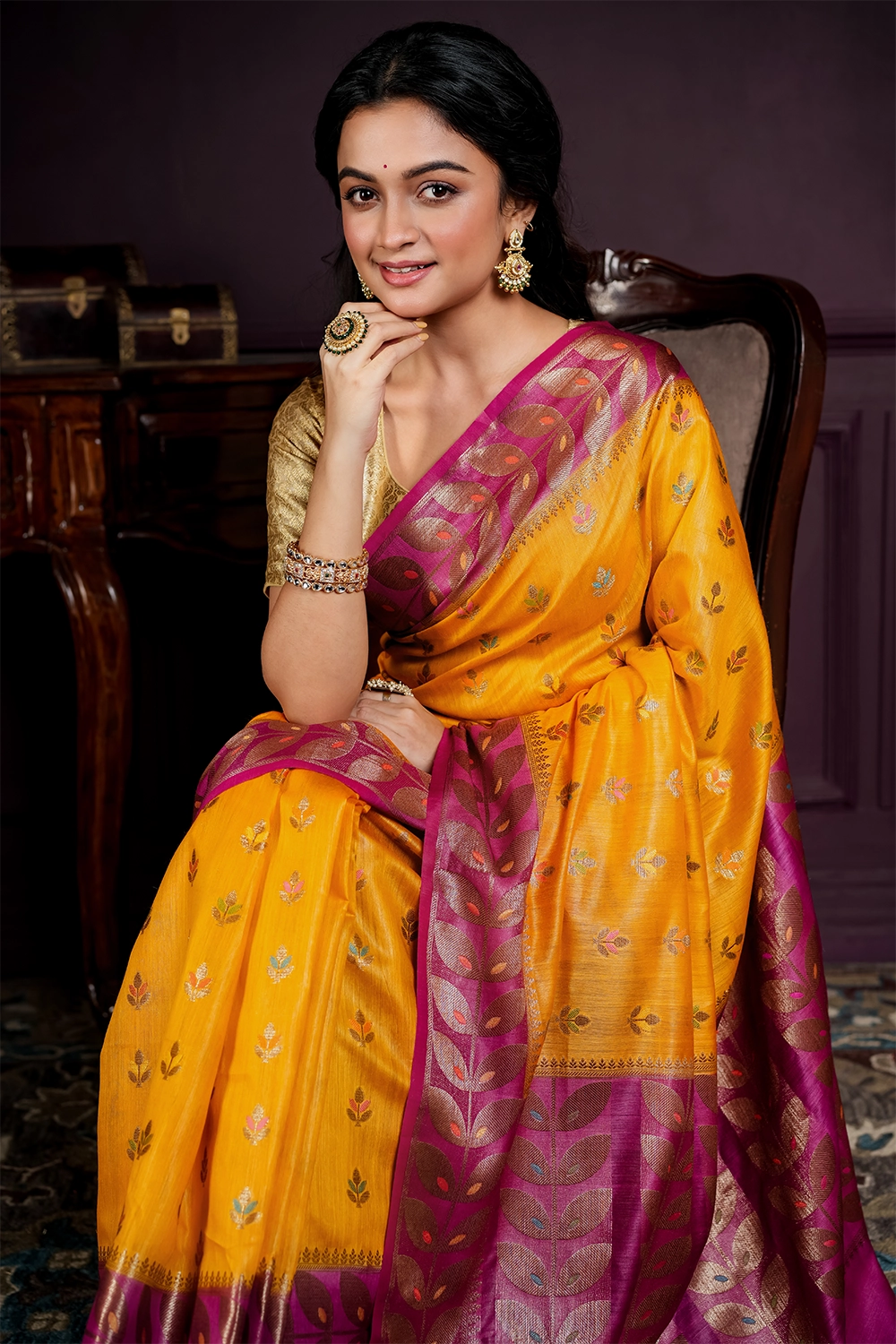 Dark Magenta Banarasi Silk Saree