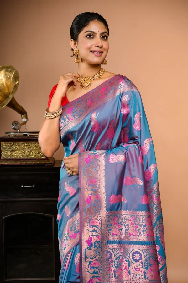Sky Blue Fancy Swarnachuri Silk Saree