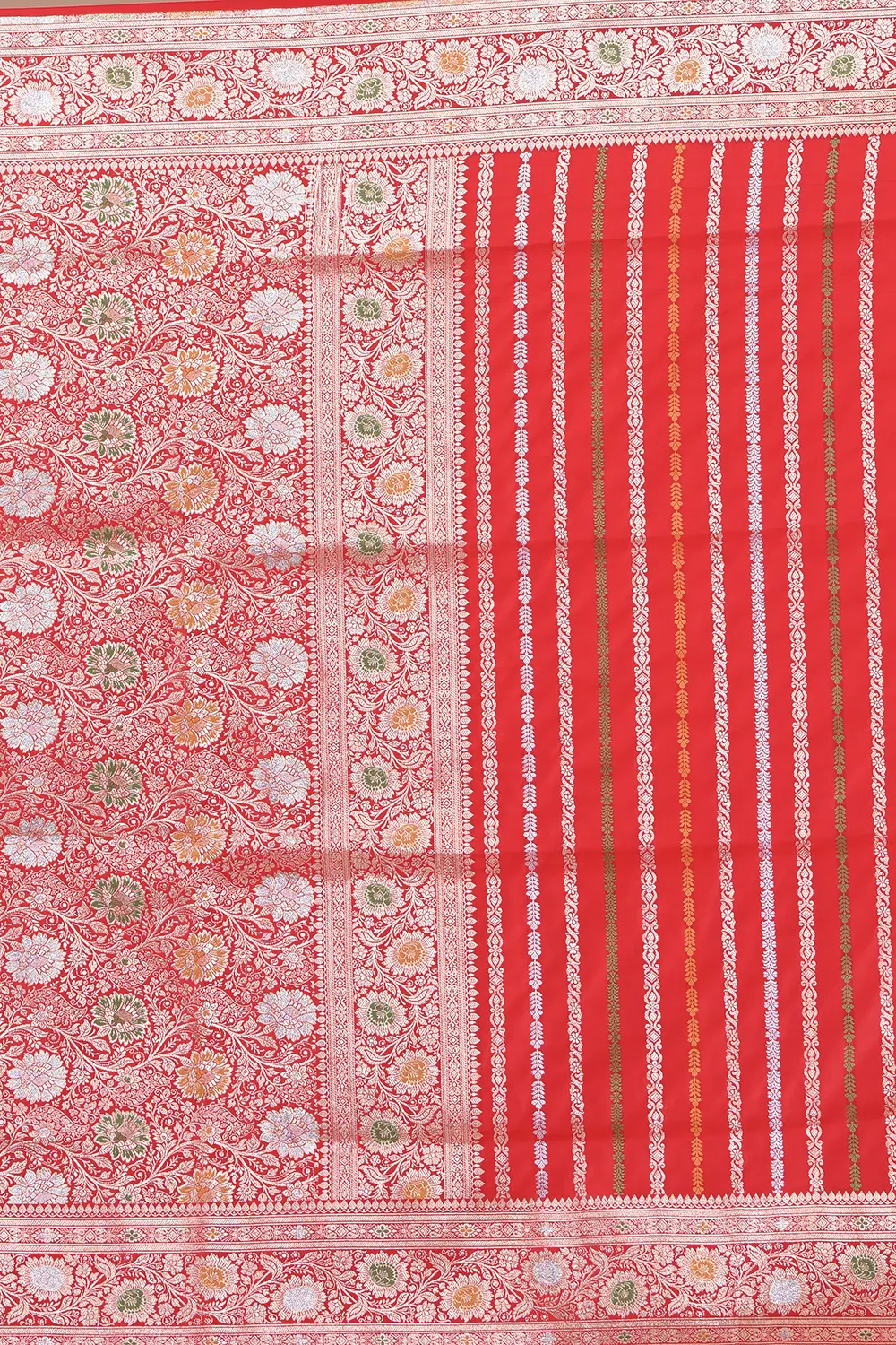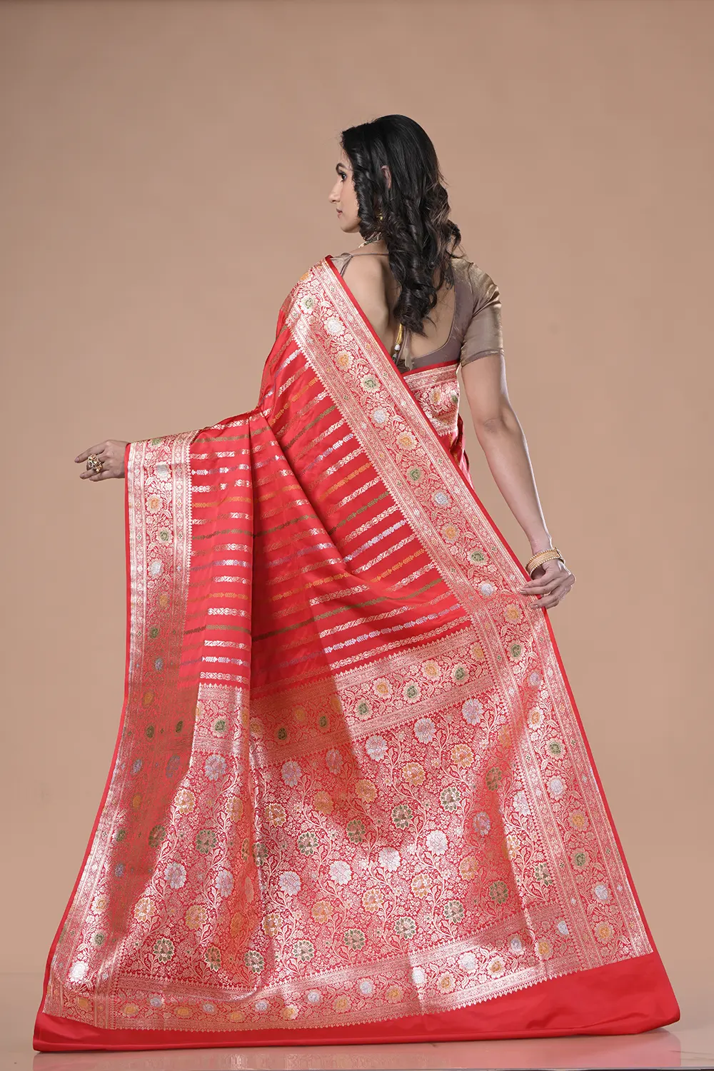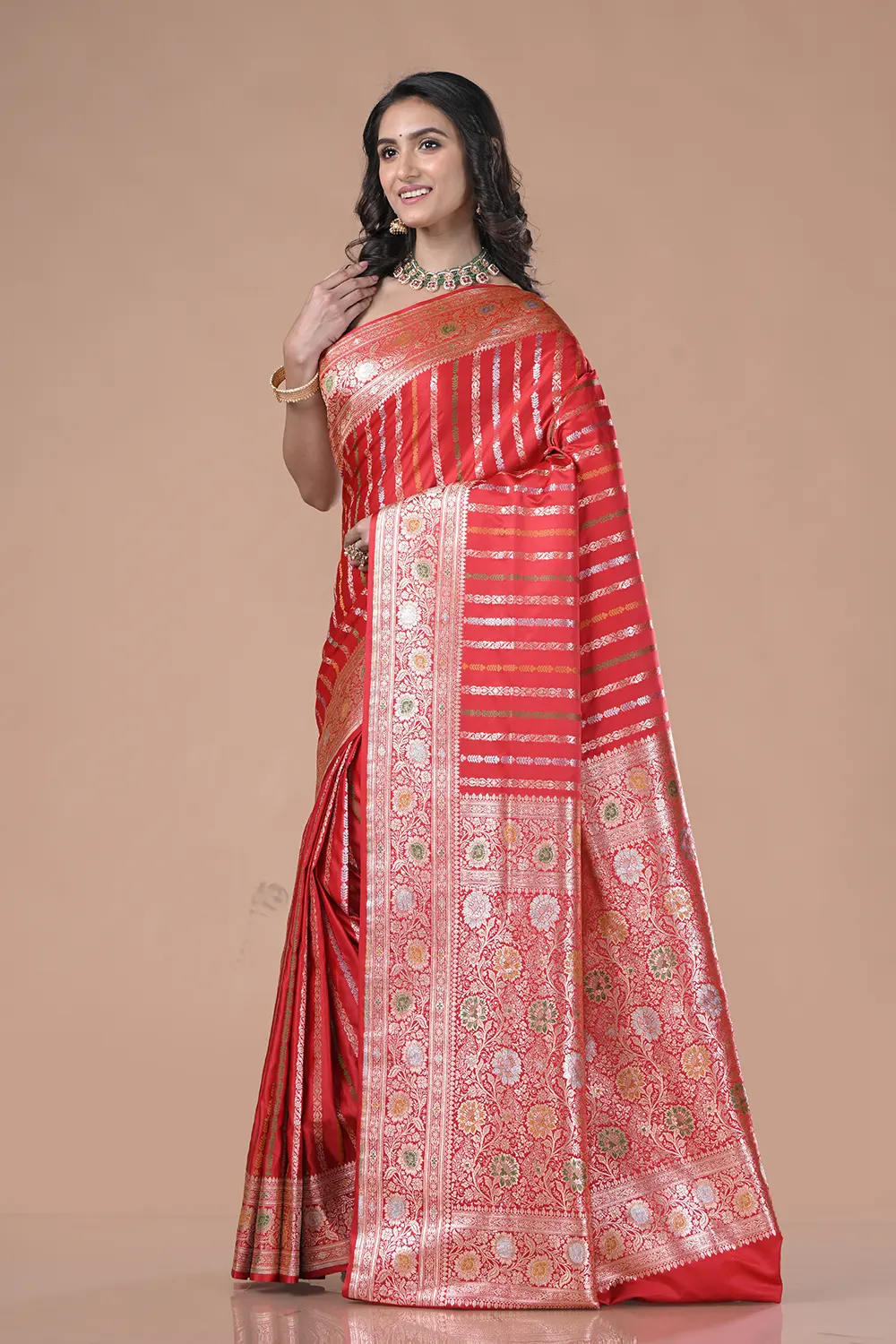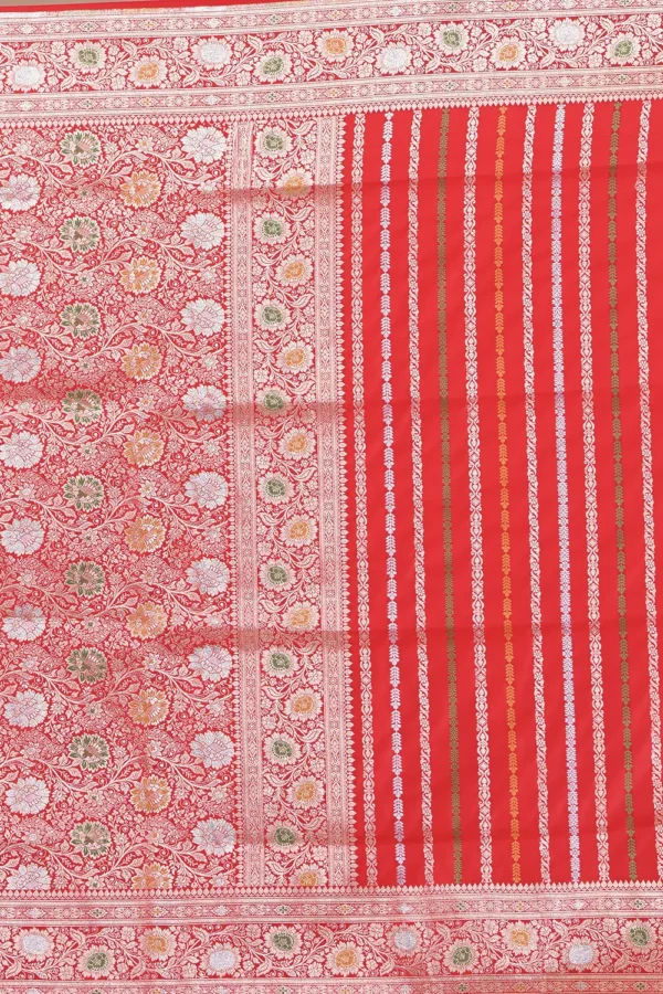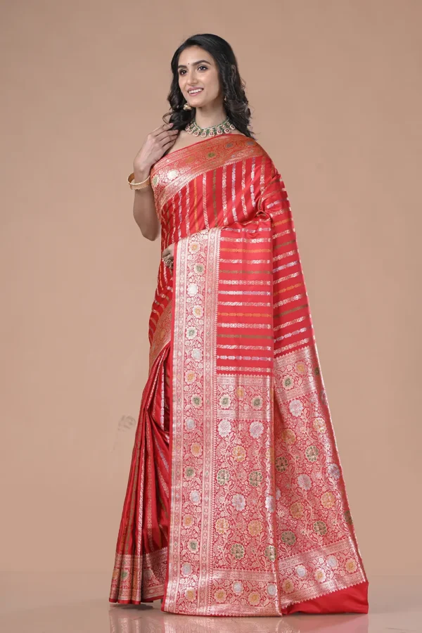 Bright Red Banarasi Silk Saree
