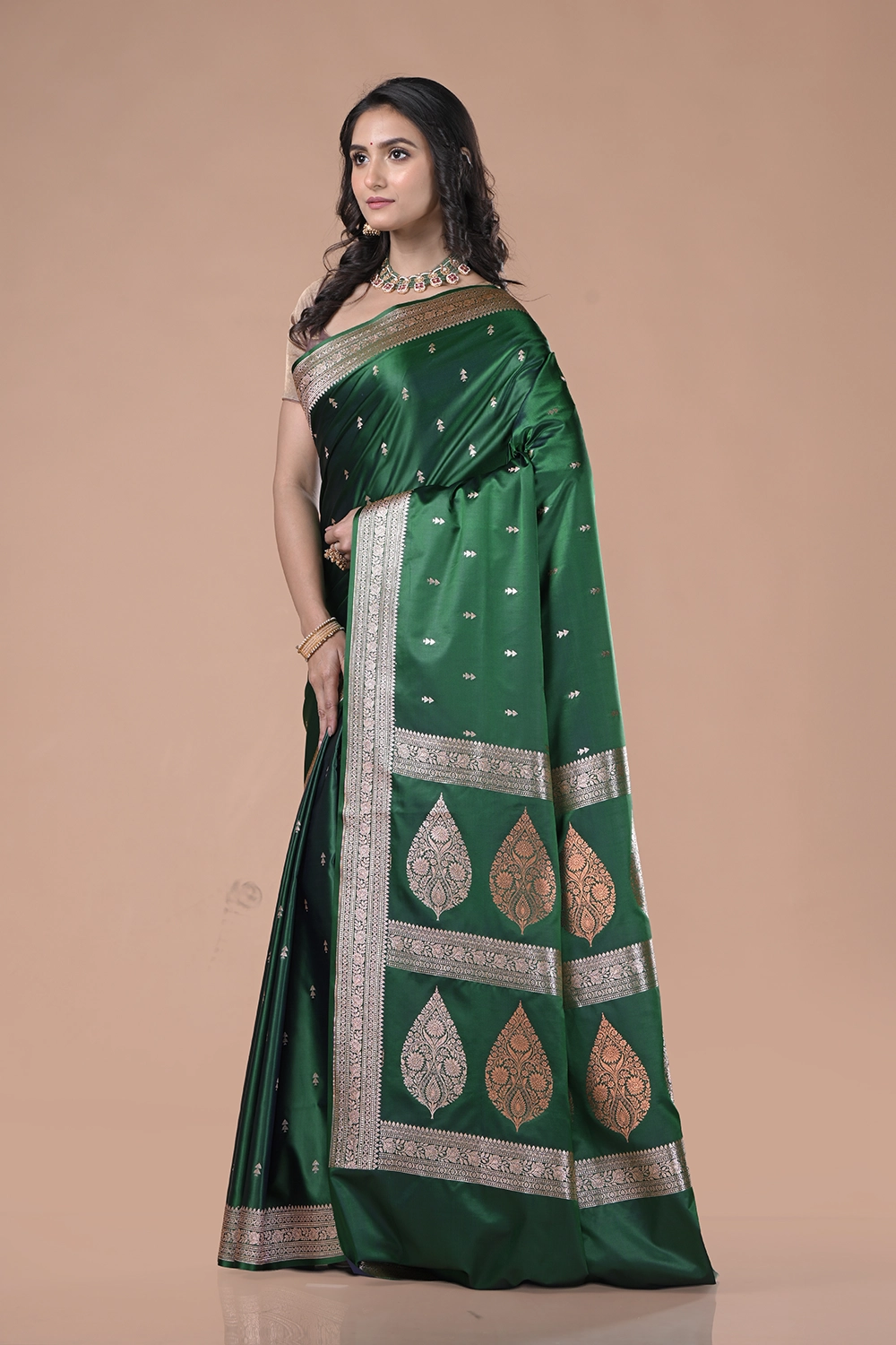 Dark Teal Green Banarasi Silk Saree