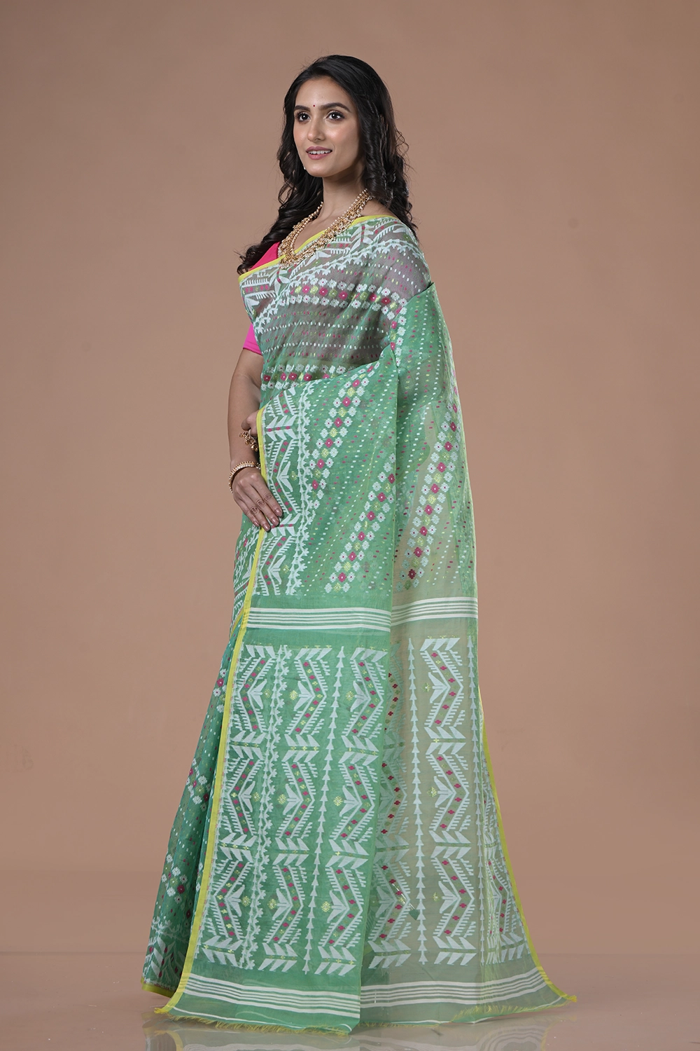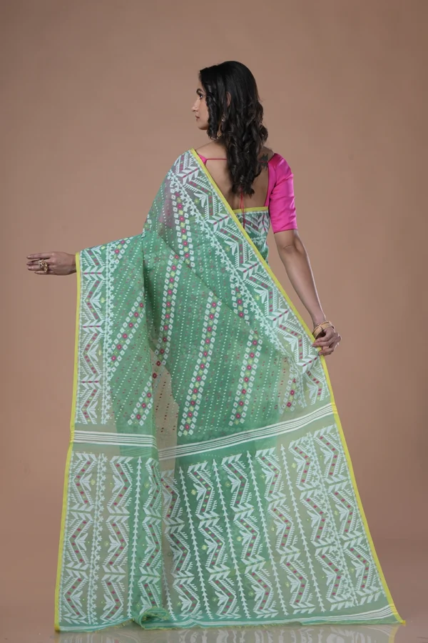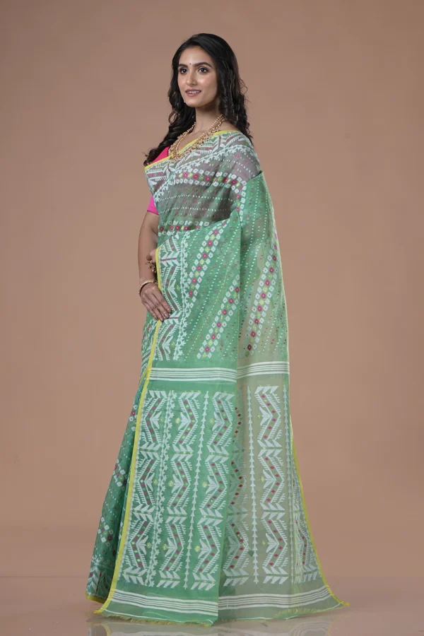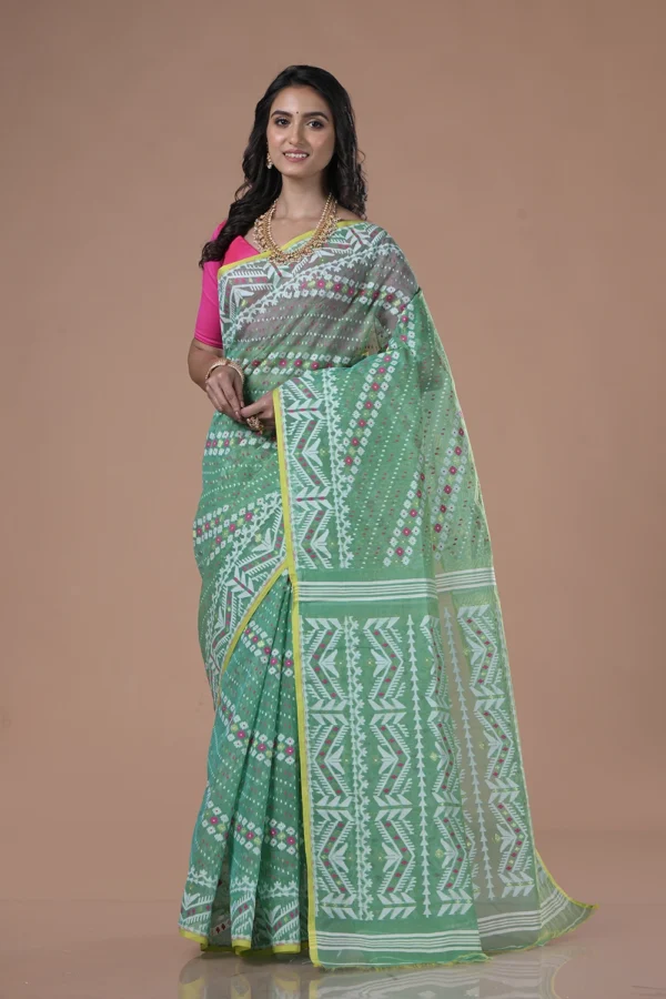 Teal Green Dhakai Jamdani Saree