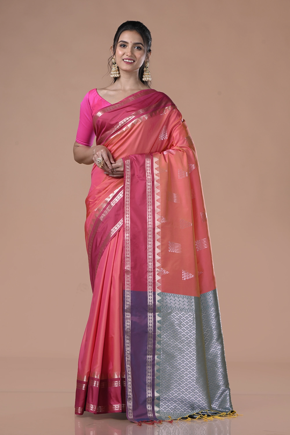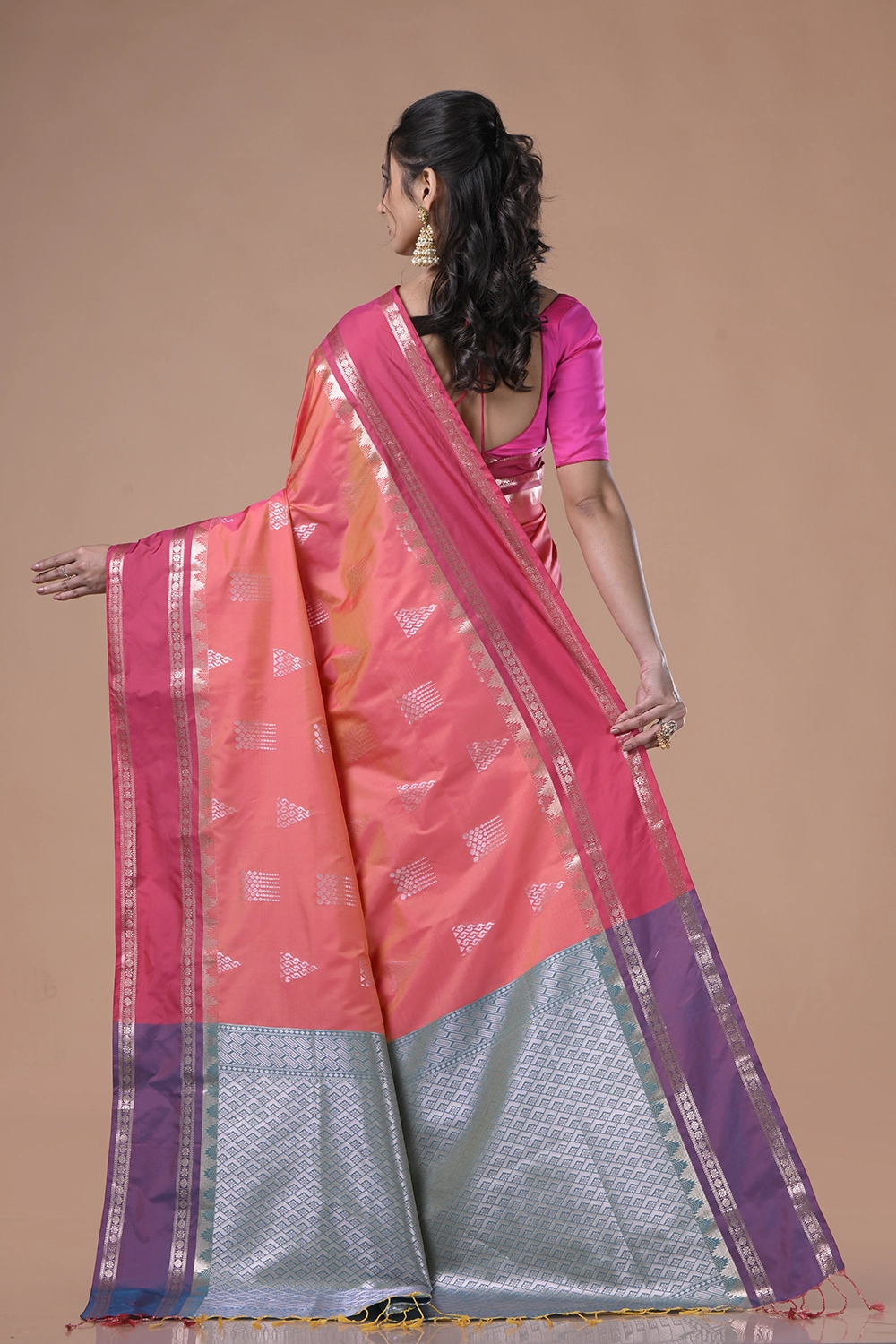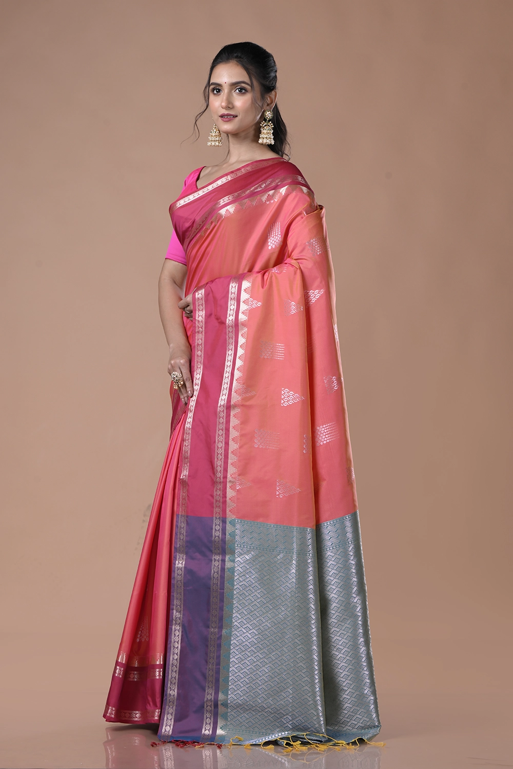 Coral Pink South Silk Saree