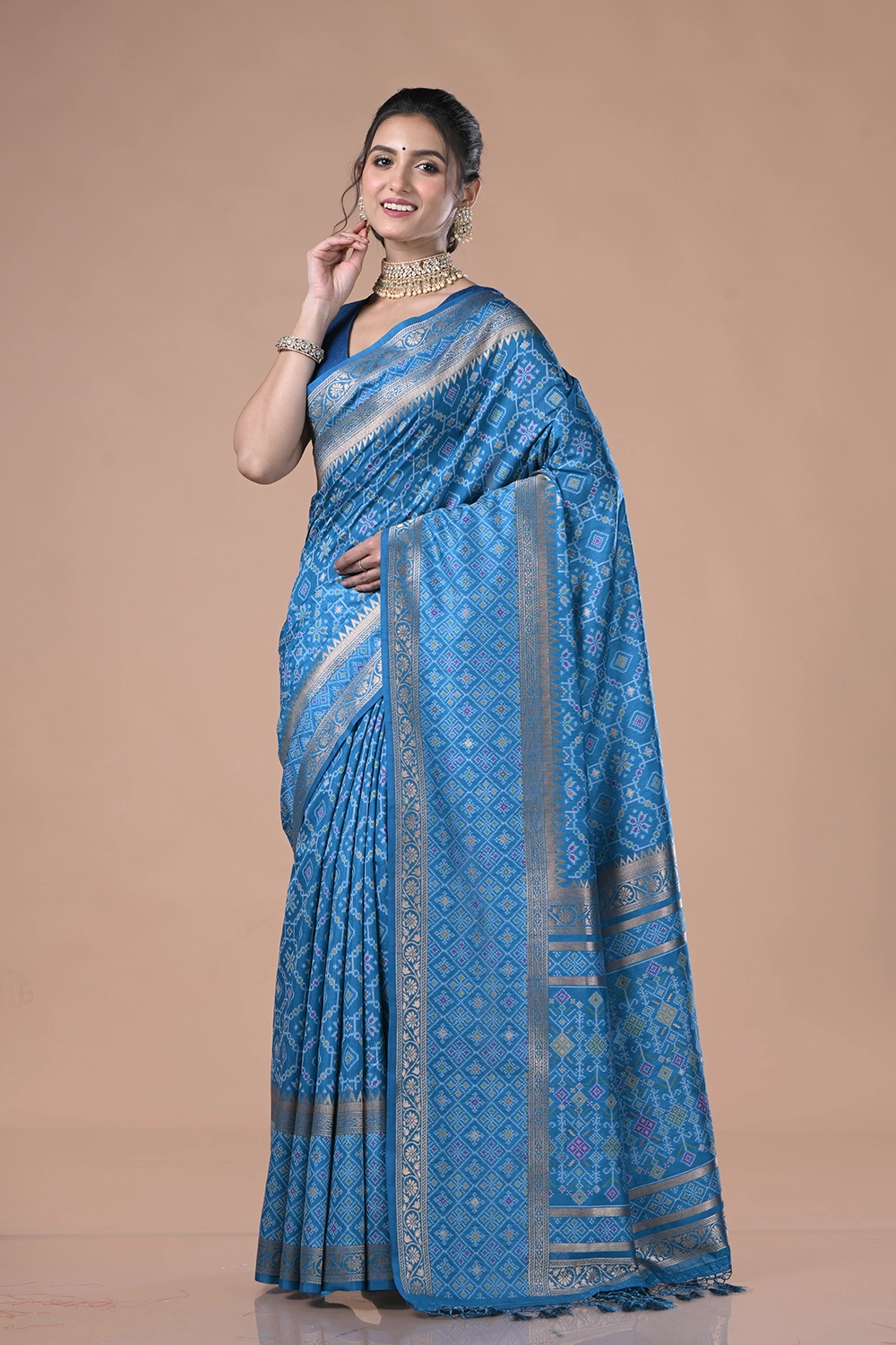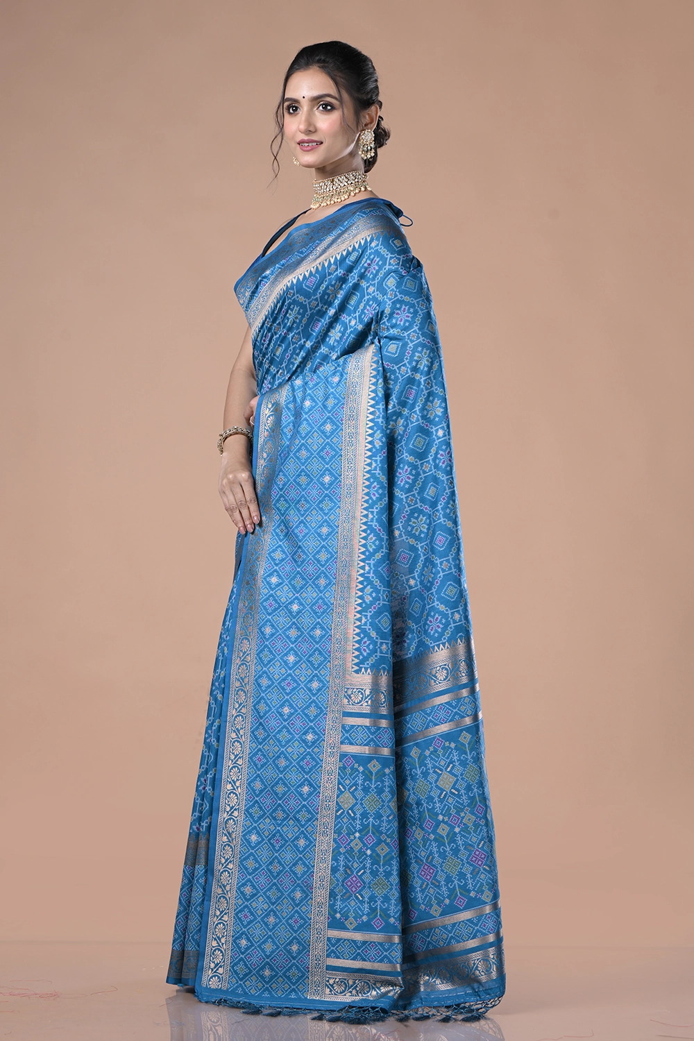 Dark Blue Katan Patola Saree