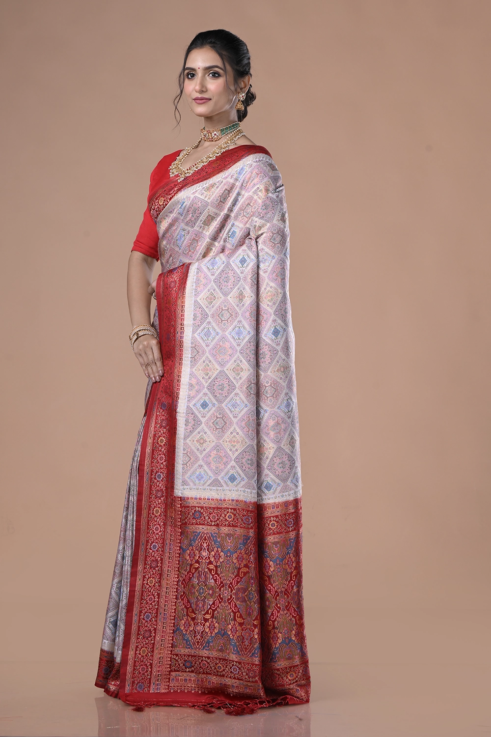 Off White Mashru Silk Saree
