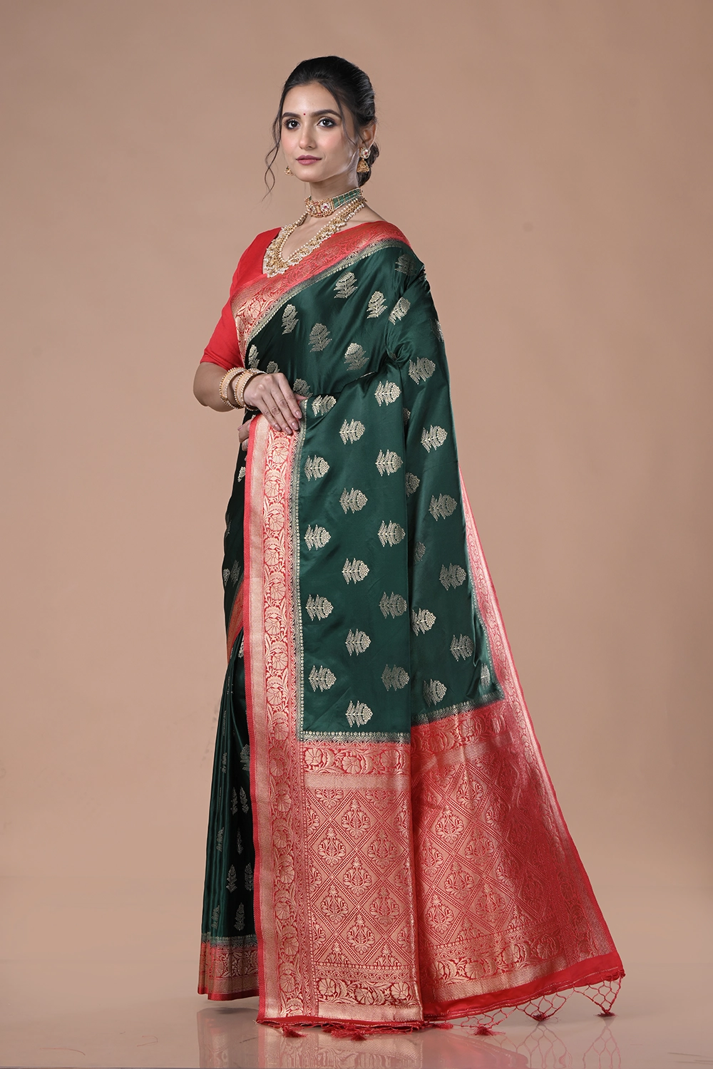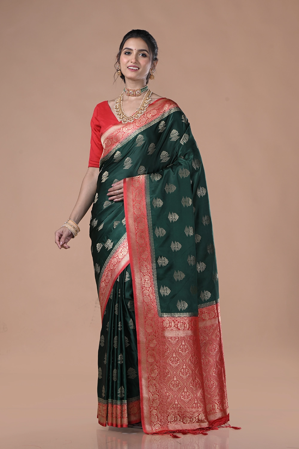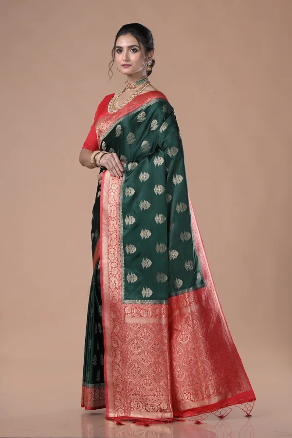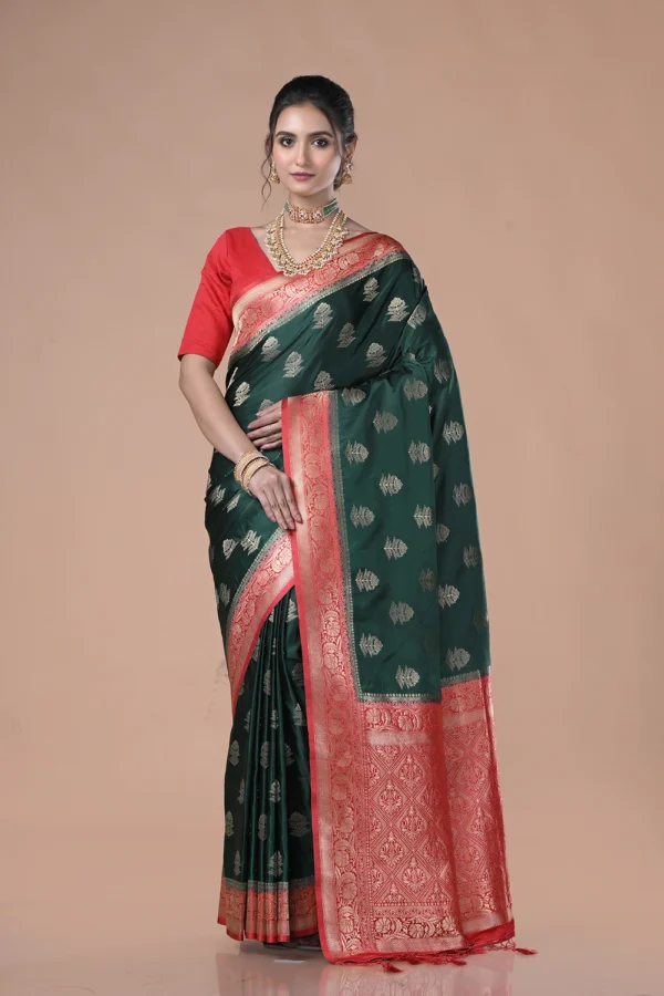 Deep Teal Green Mashru Silk Saree