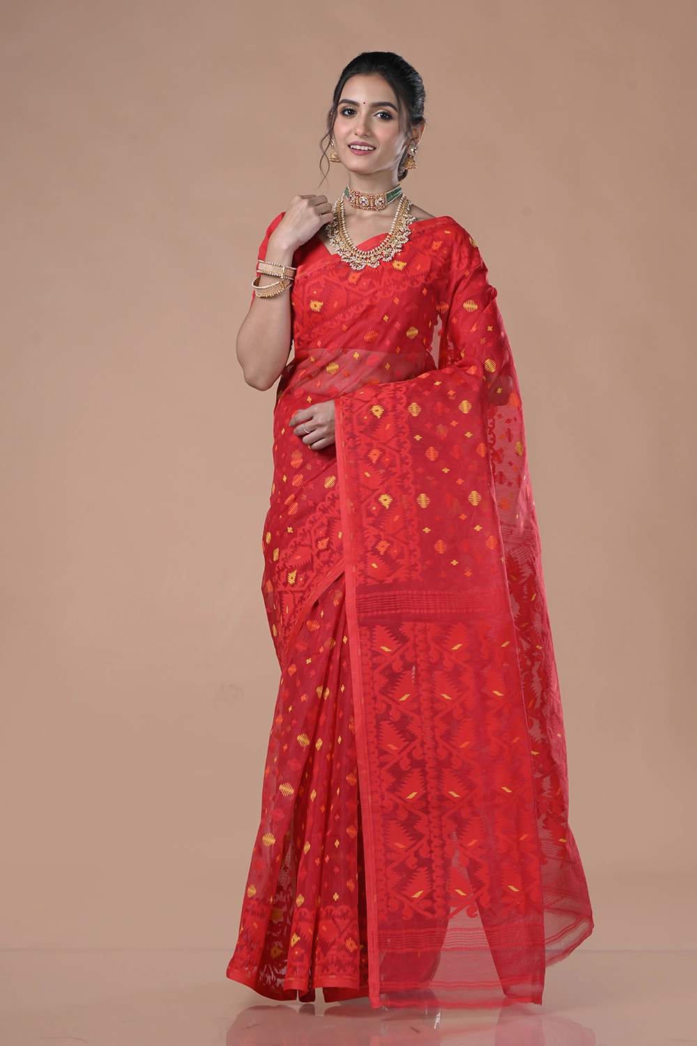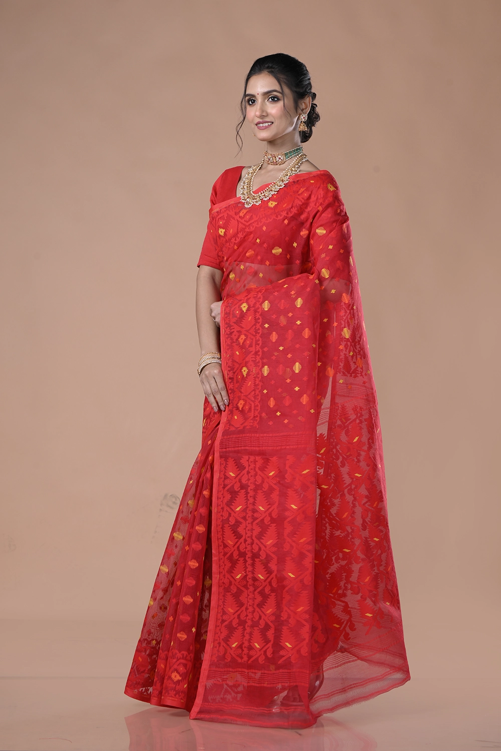 Crimson Red Dhakai Jamdani Saree