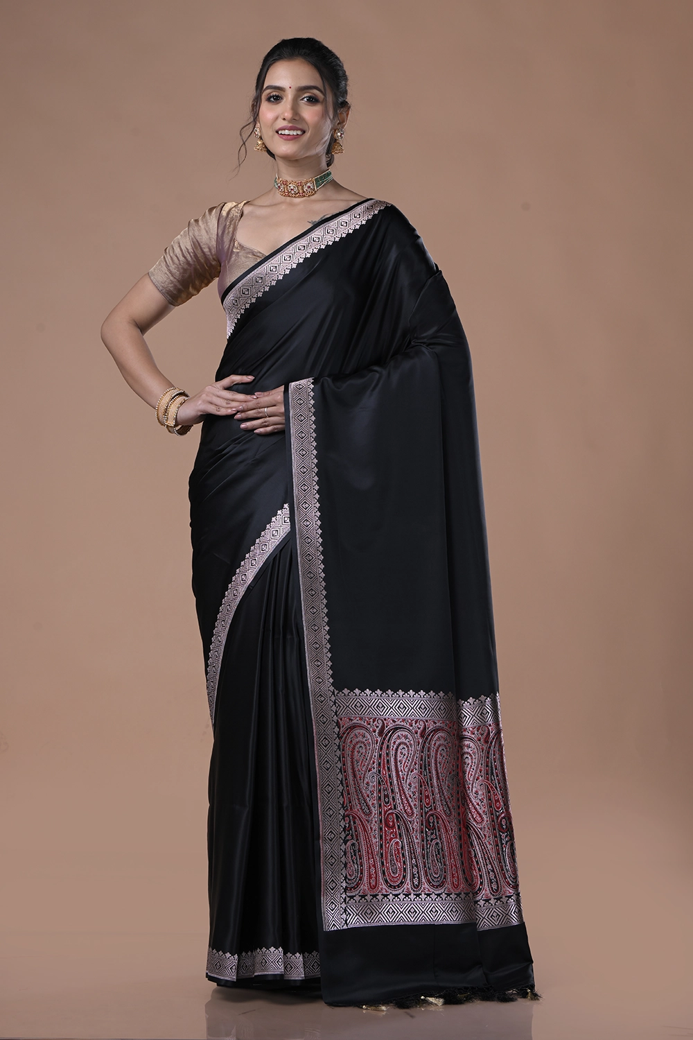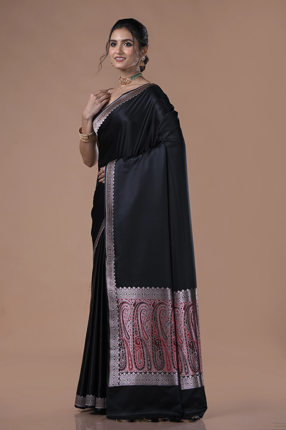 Raisin Black Mashru Silk Saree