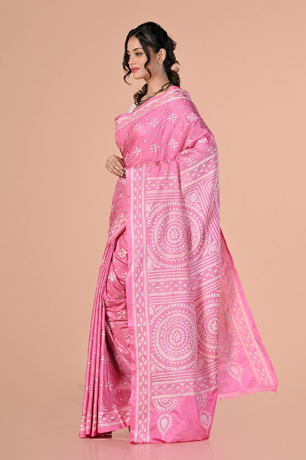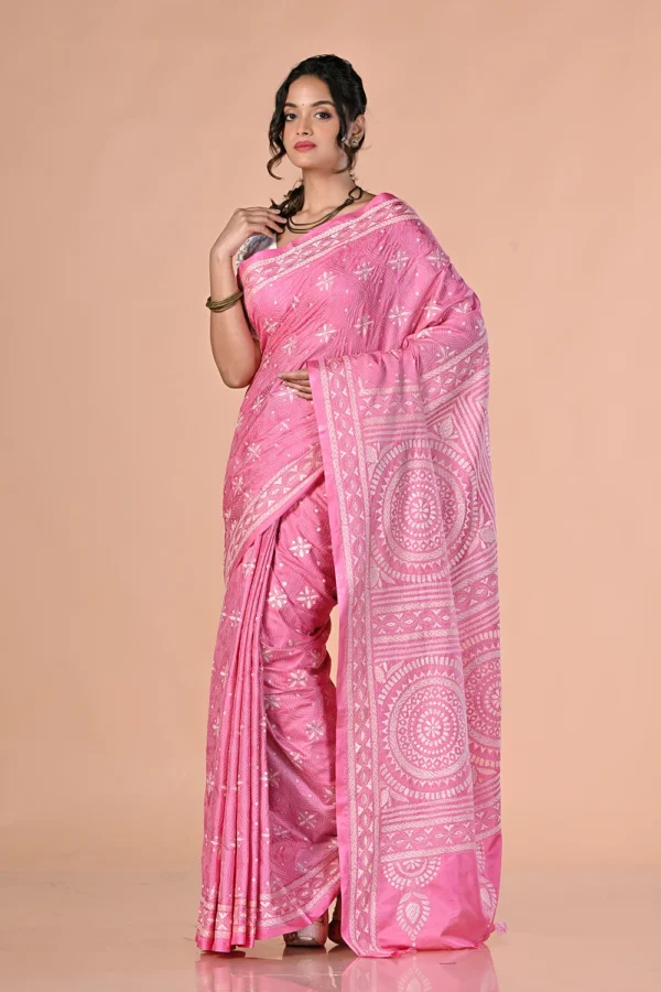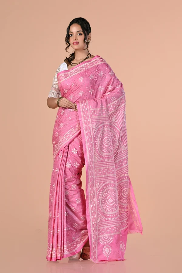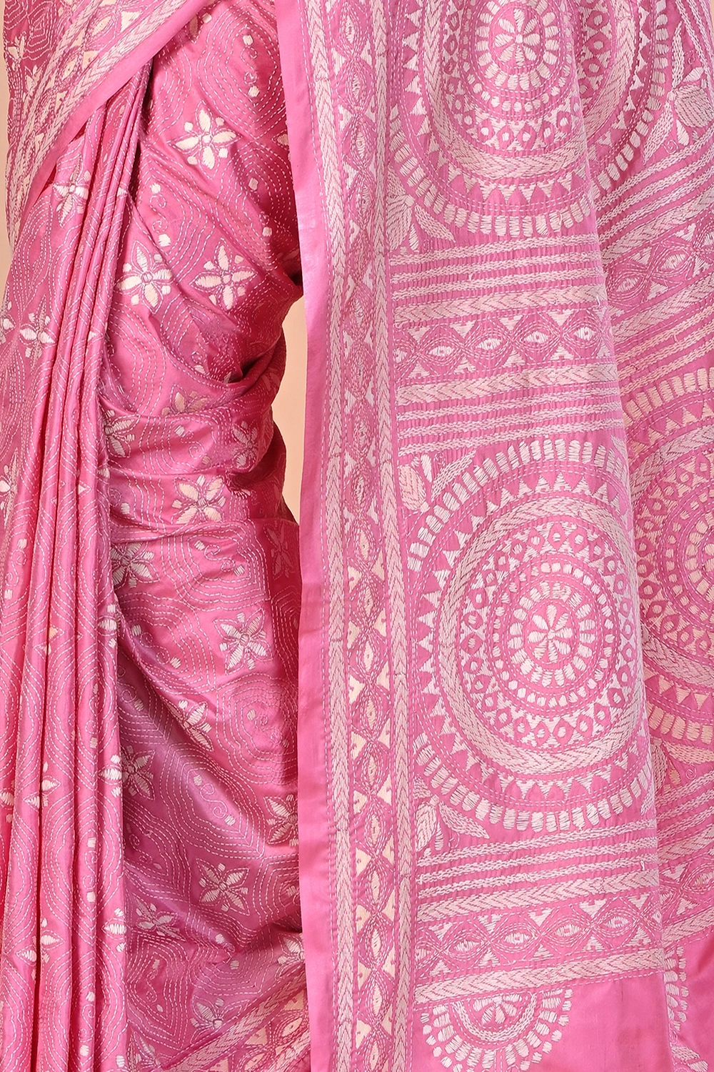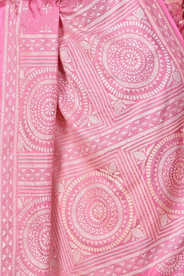 Light Pink Kantha Stitch Saree