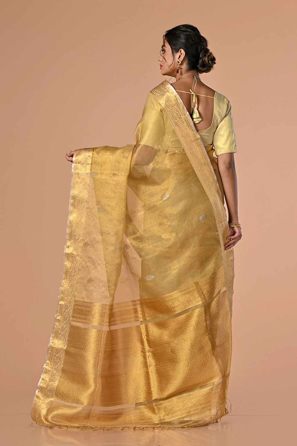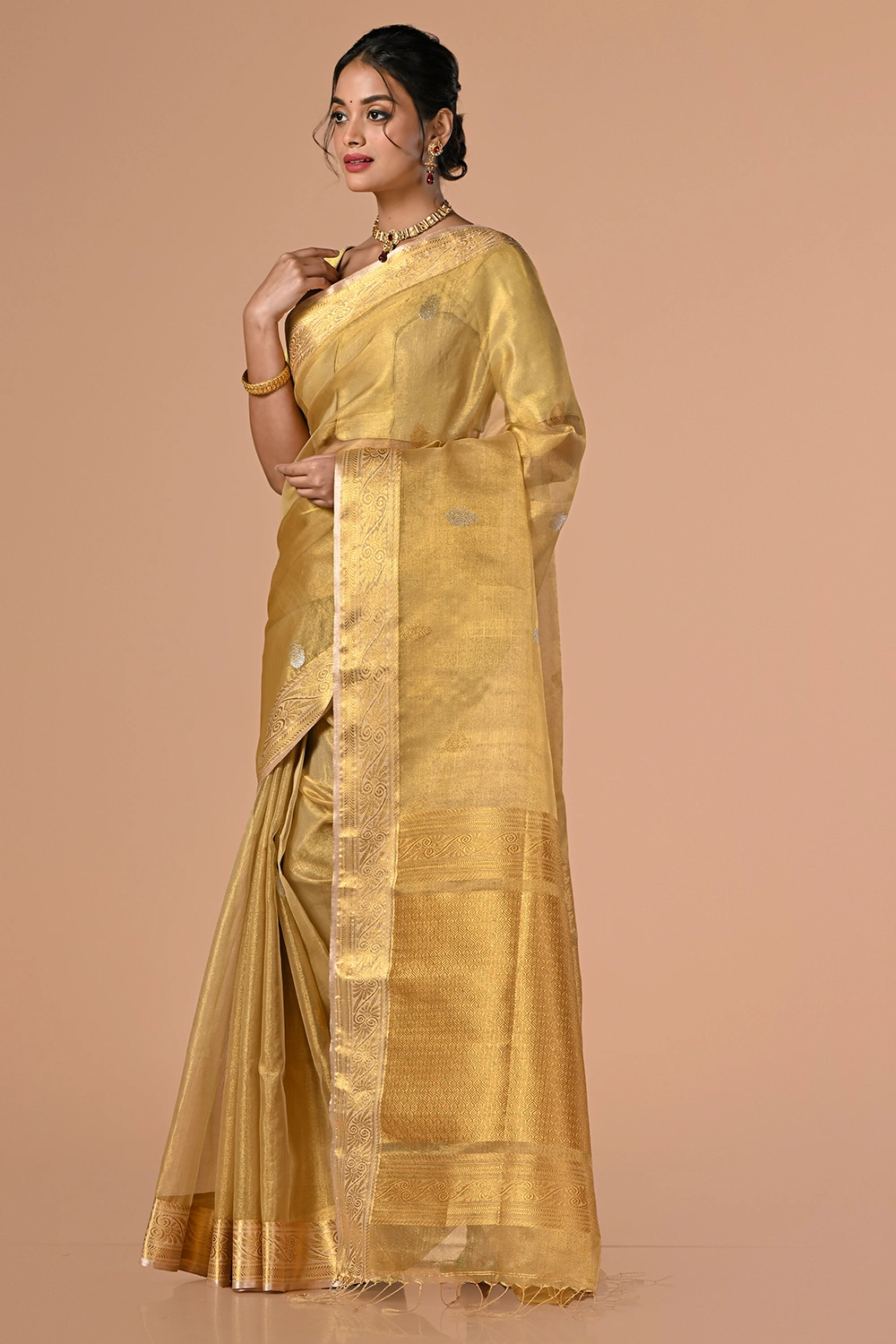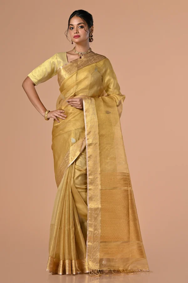Soft Golden Fancy Handloom Saree