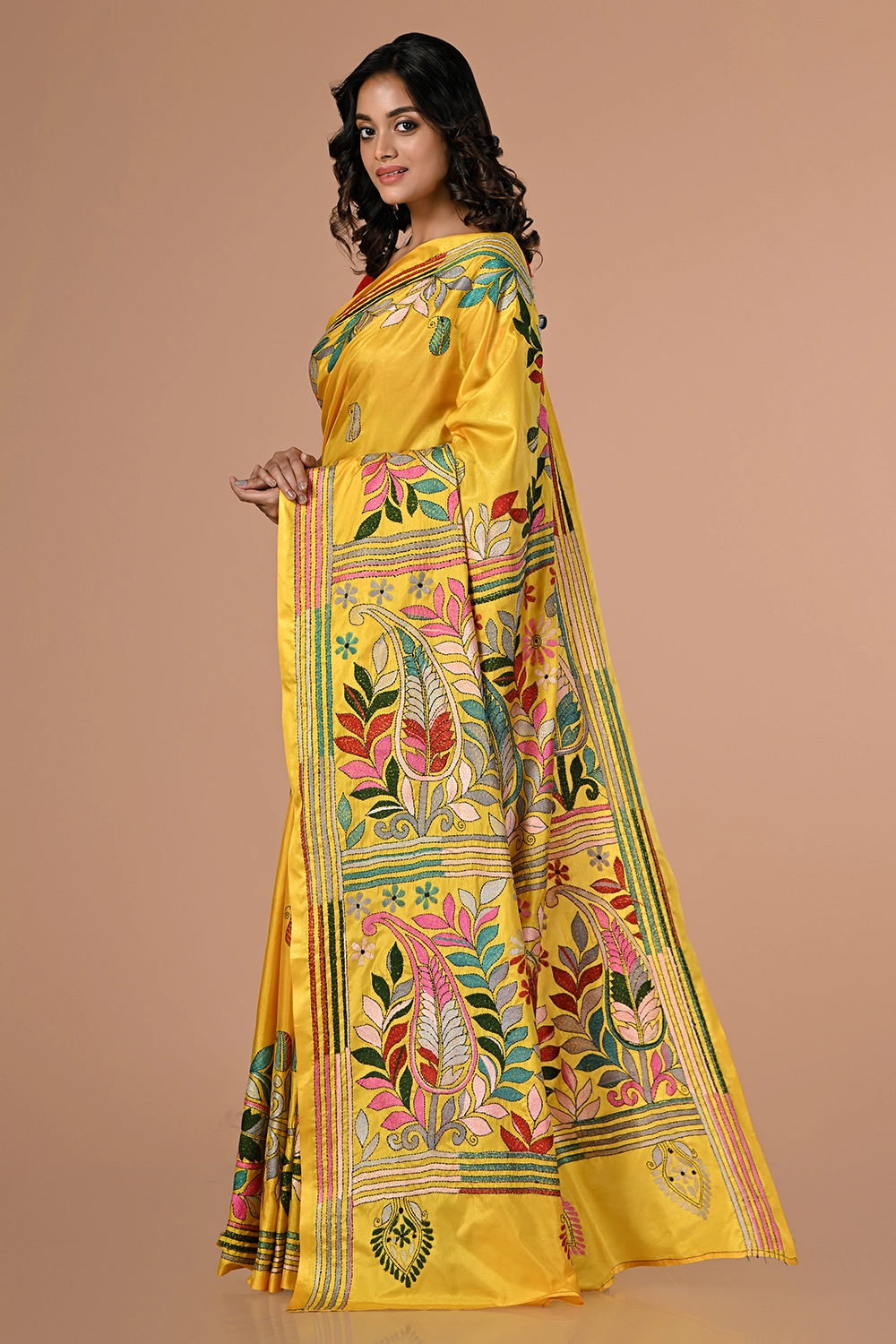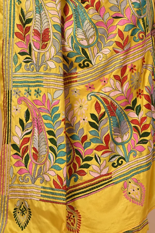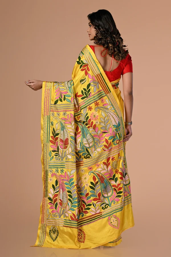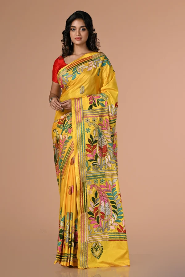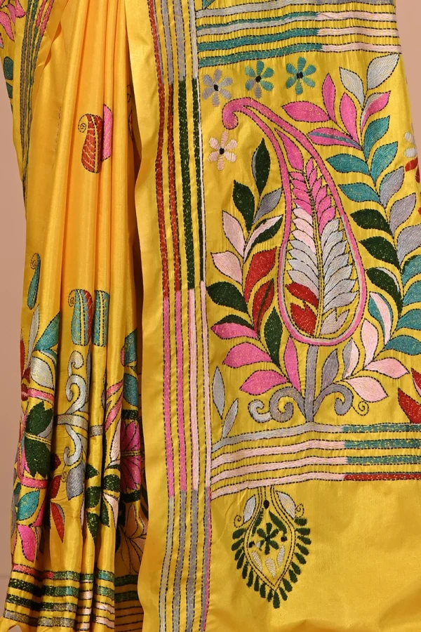 Deep Yellow Kantha Stitch Saree