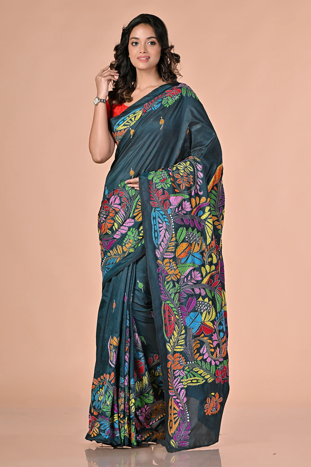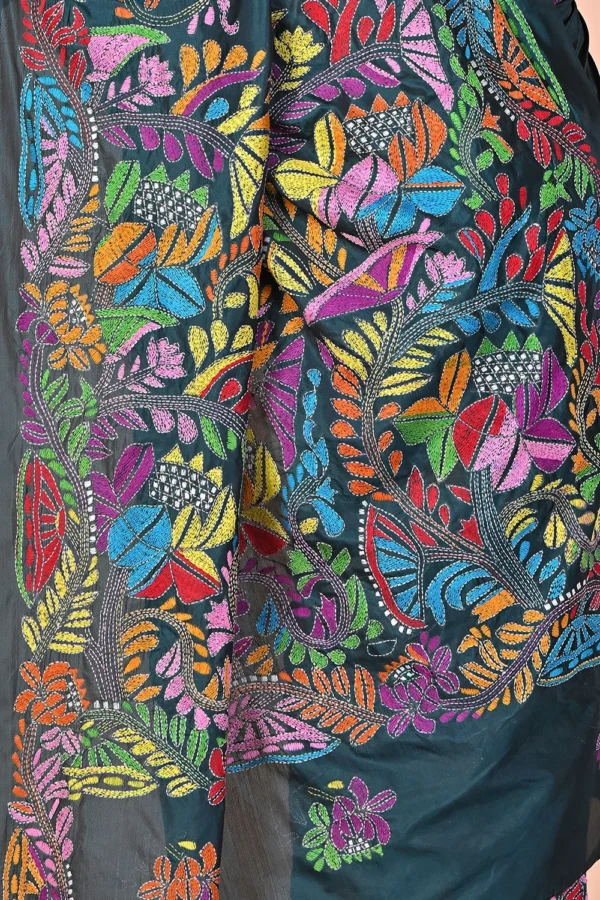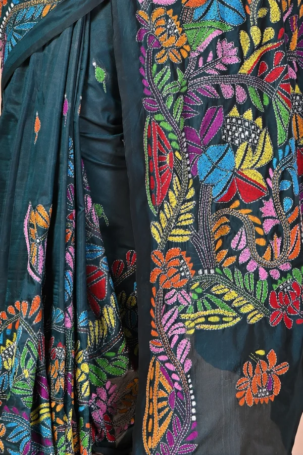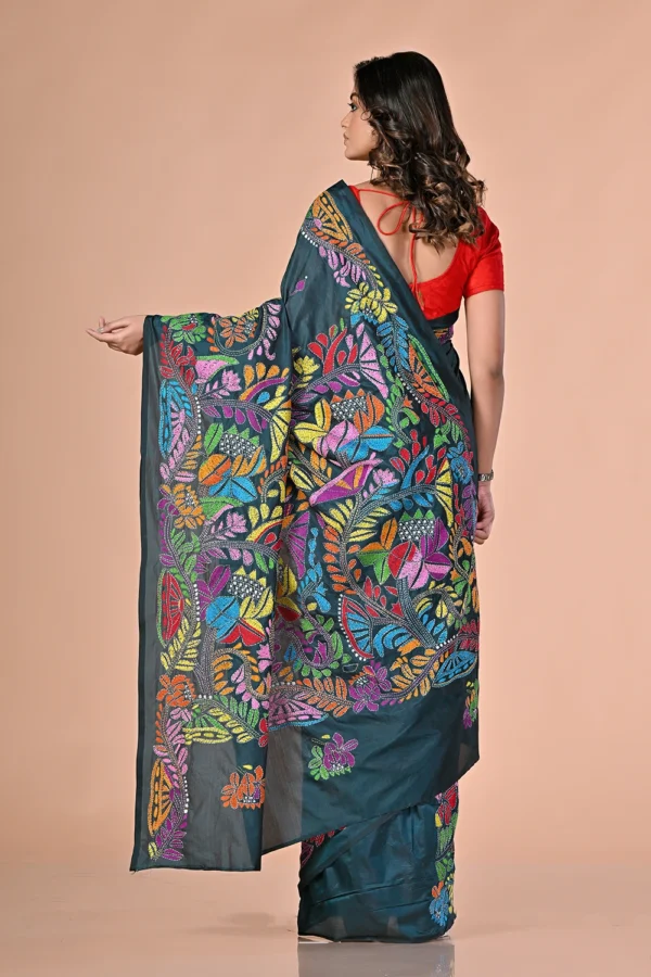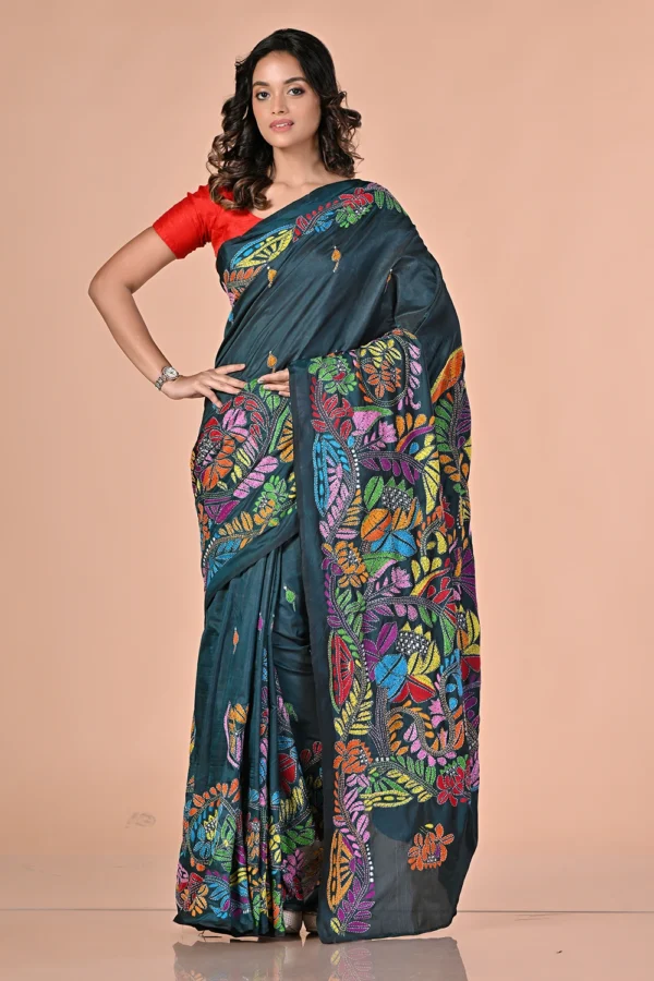 Steel Blue Kantha Stitch Saree