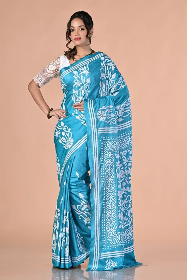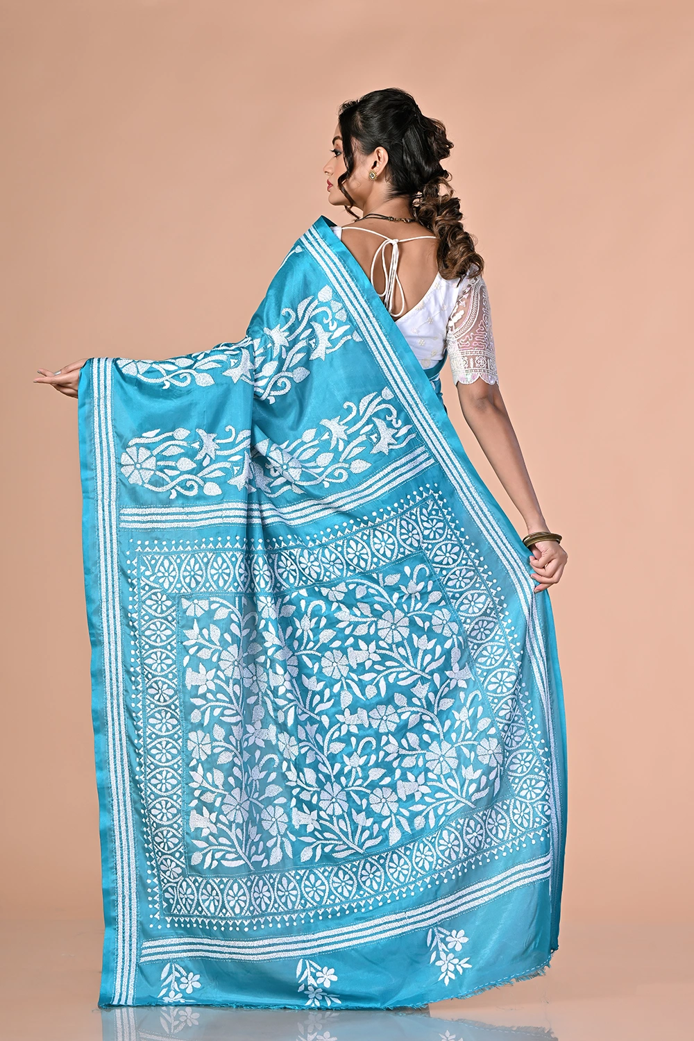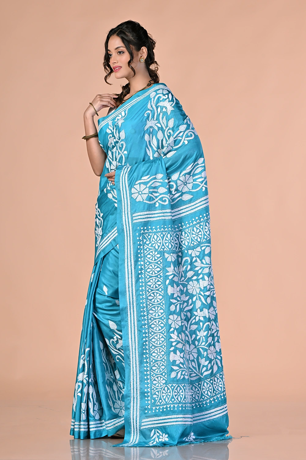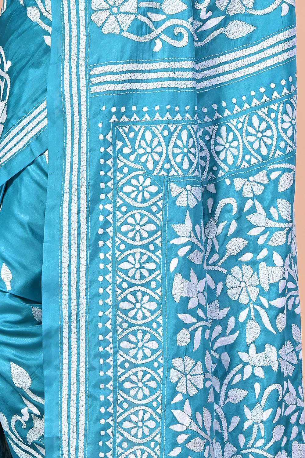 Sky Blue Kantha Stitch Saree