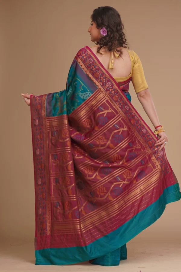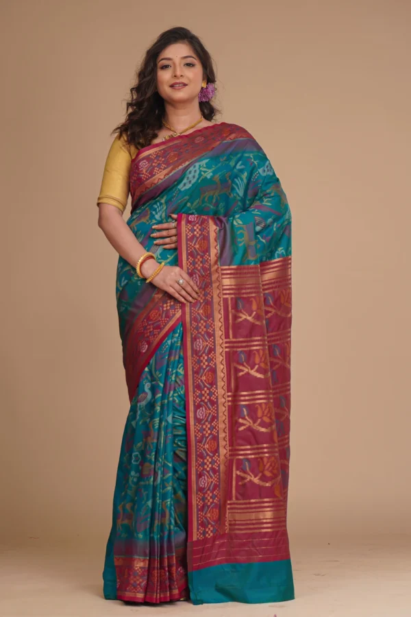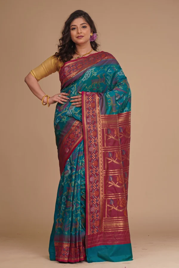 Dark Teal Blue Katan Pochampally Saree