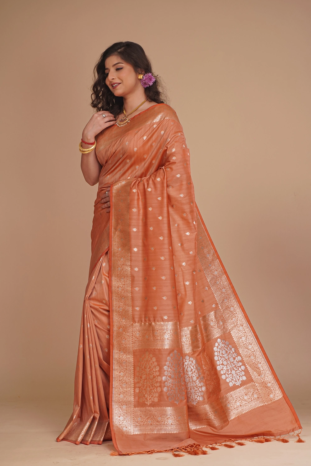 Soft Orange Semi Tussar Saree