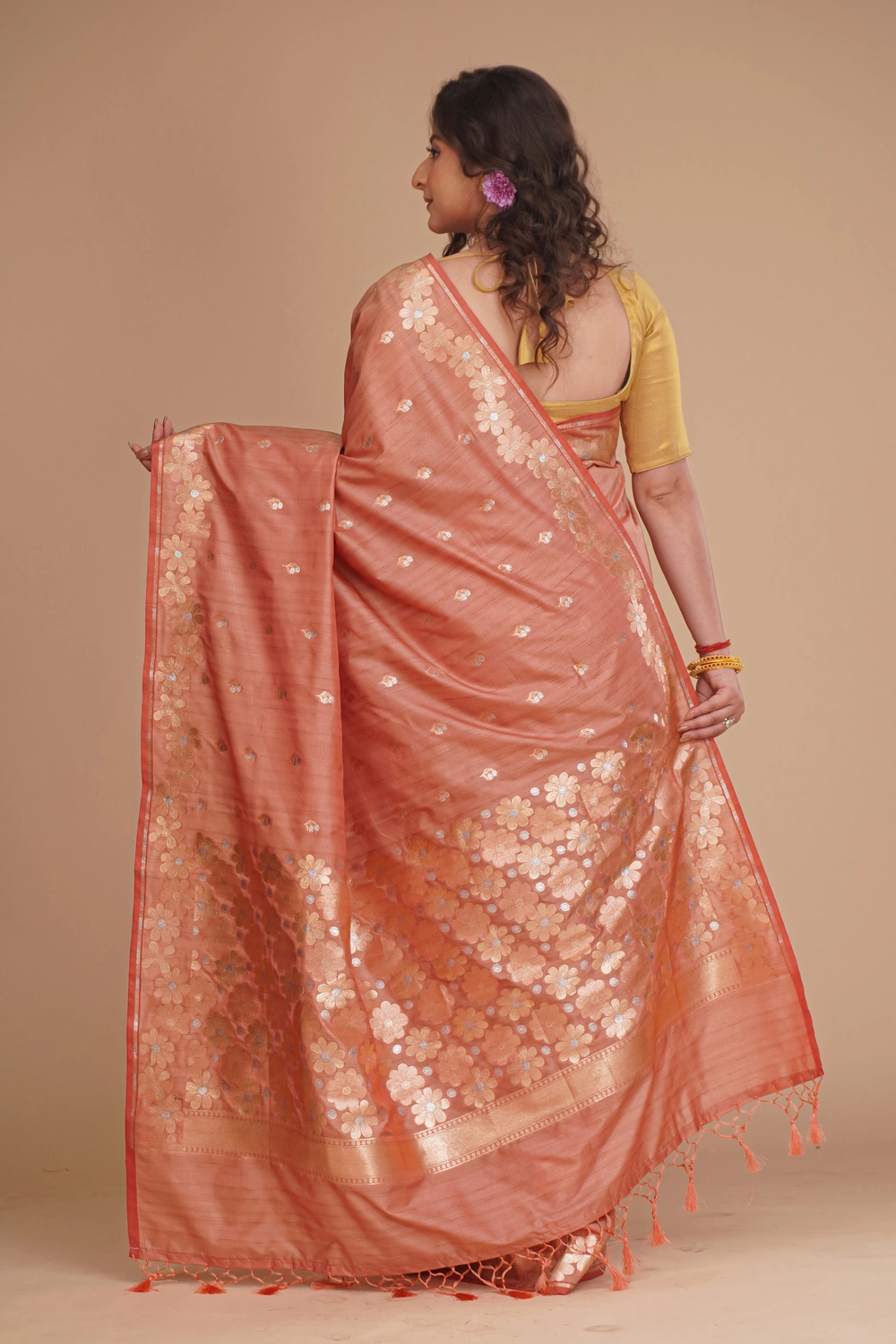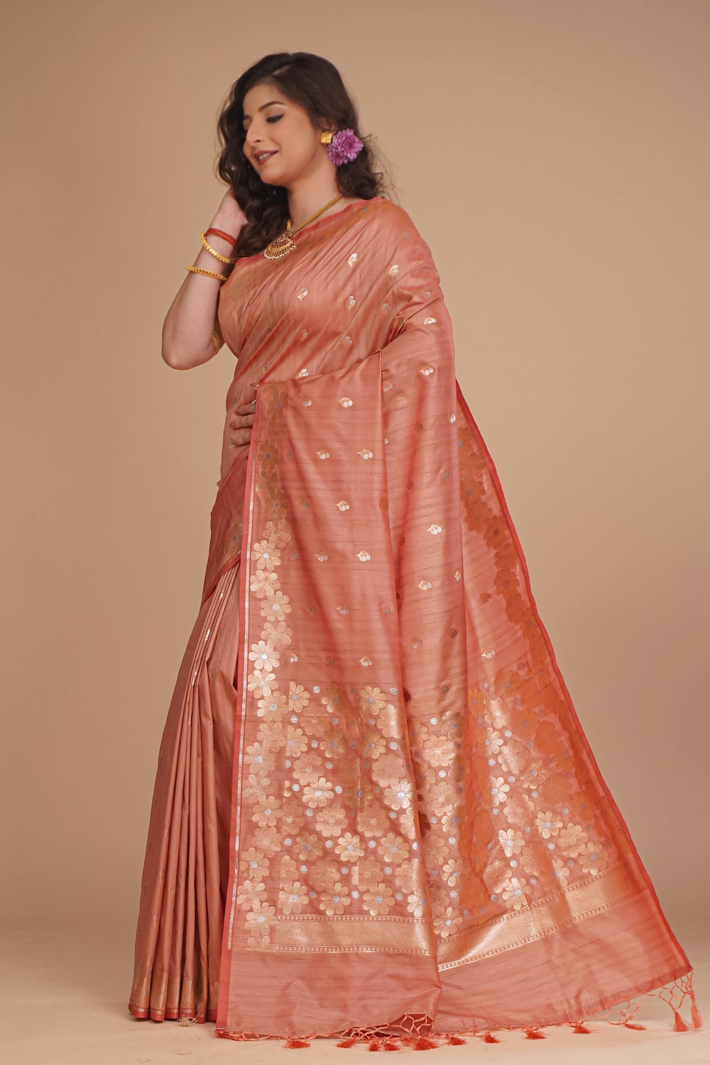 Dusty Pink Semi Tussar Saree