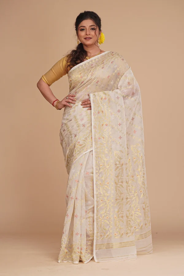 Light Beige Dhakai Jamdani Saree