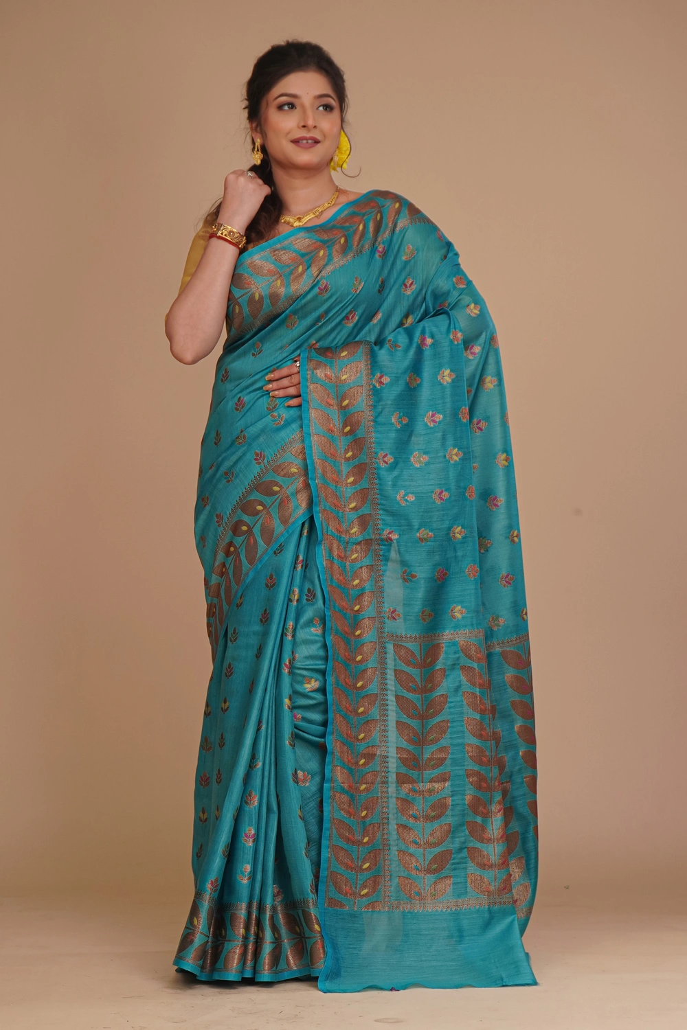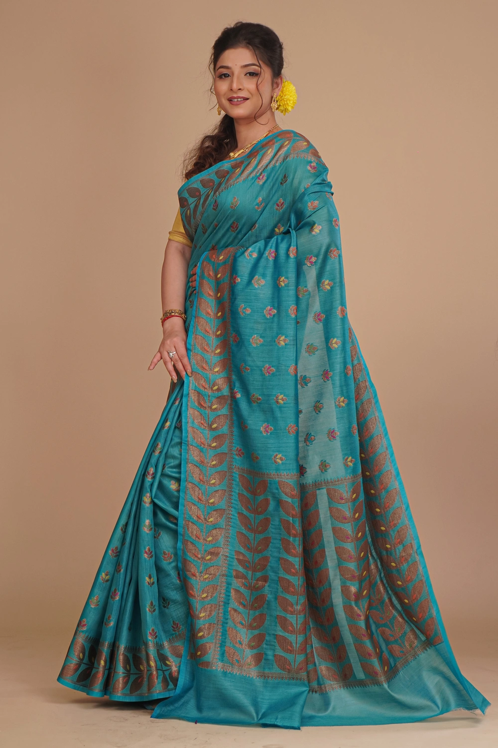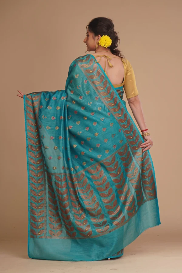 Teal Blue Pure Tussar Saree