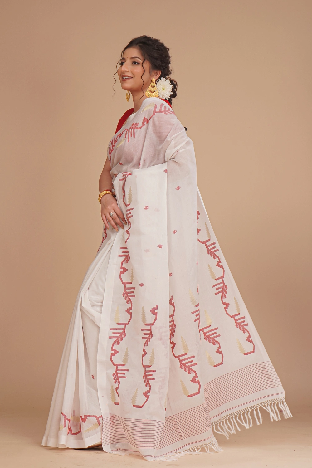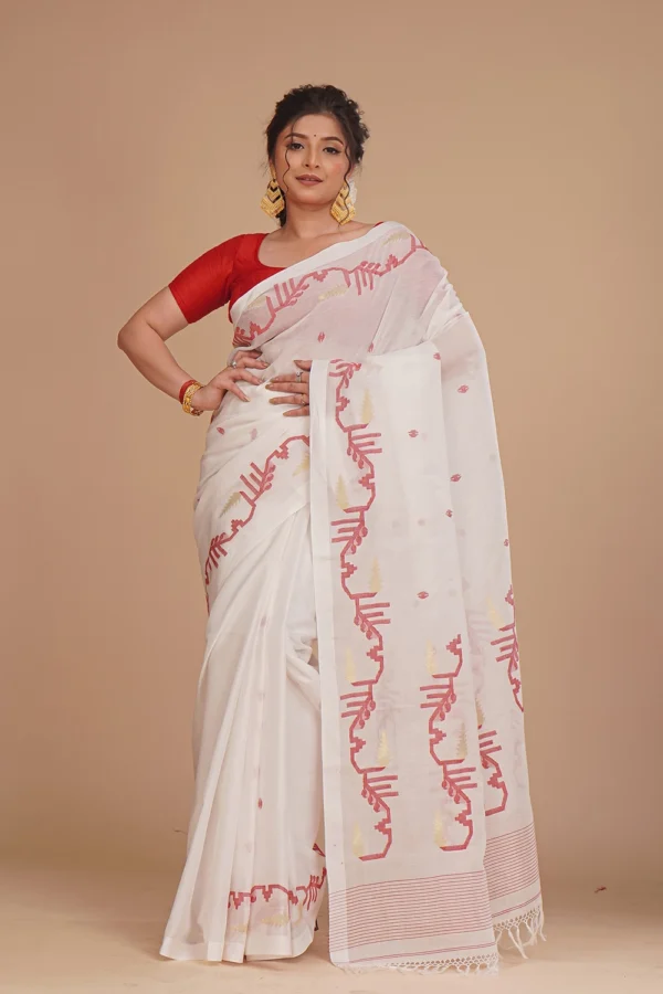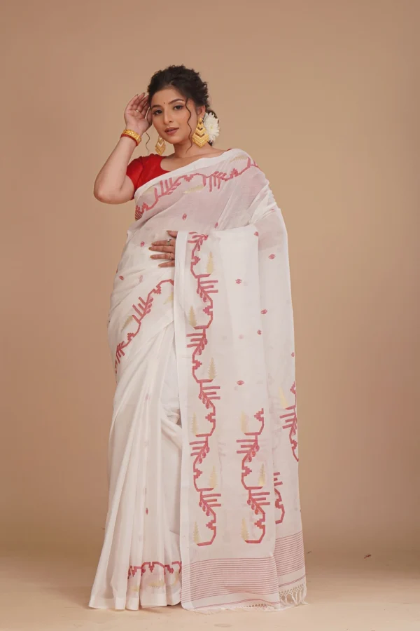 Pale White Dhakai Jamdani Saree