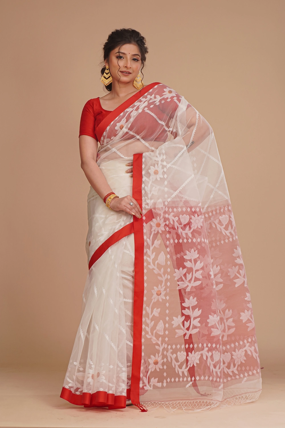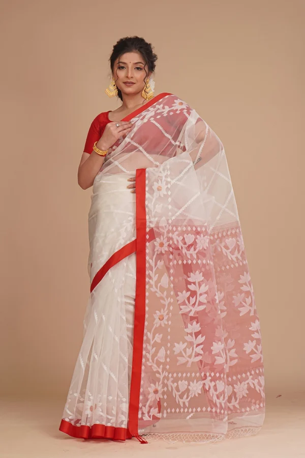 Creamy White Muslin Jamdani Saree