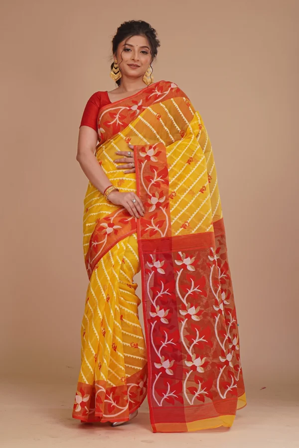 Mustard Yellow Dhakai Jamdani Saree