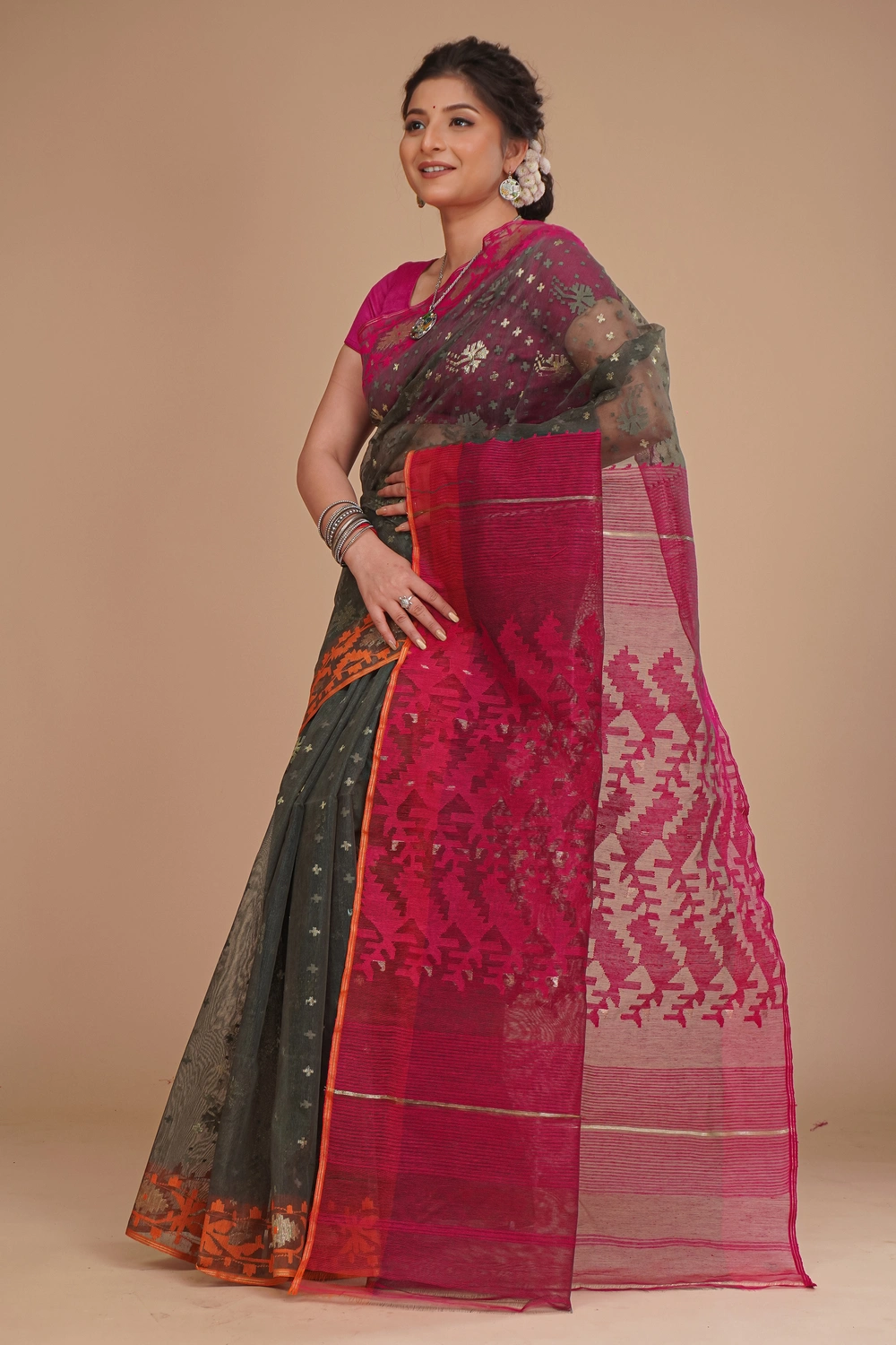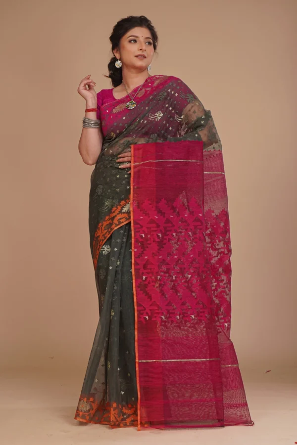 Charcoal Green Pure Dhakai Jamdani Saree
