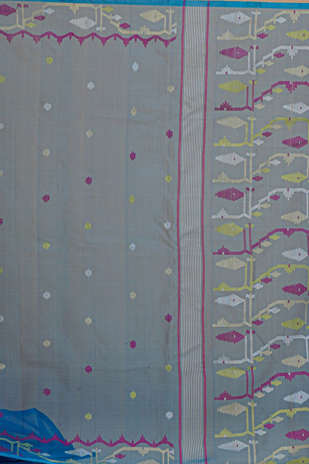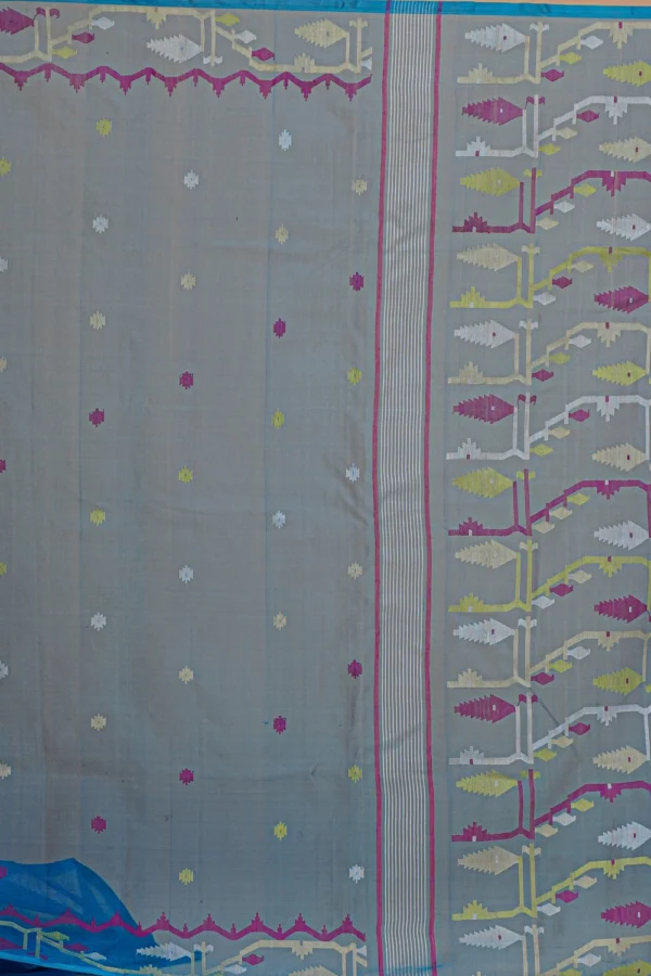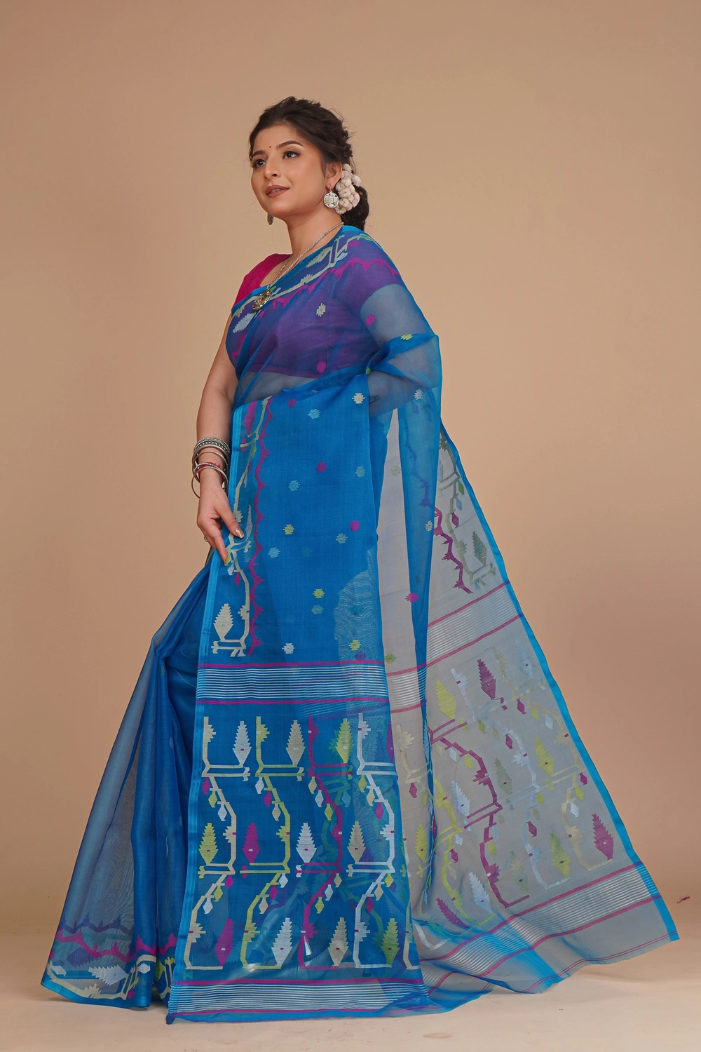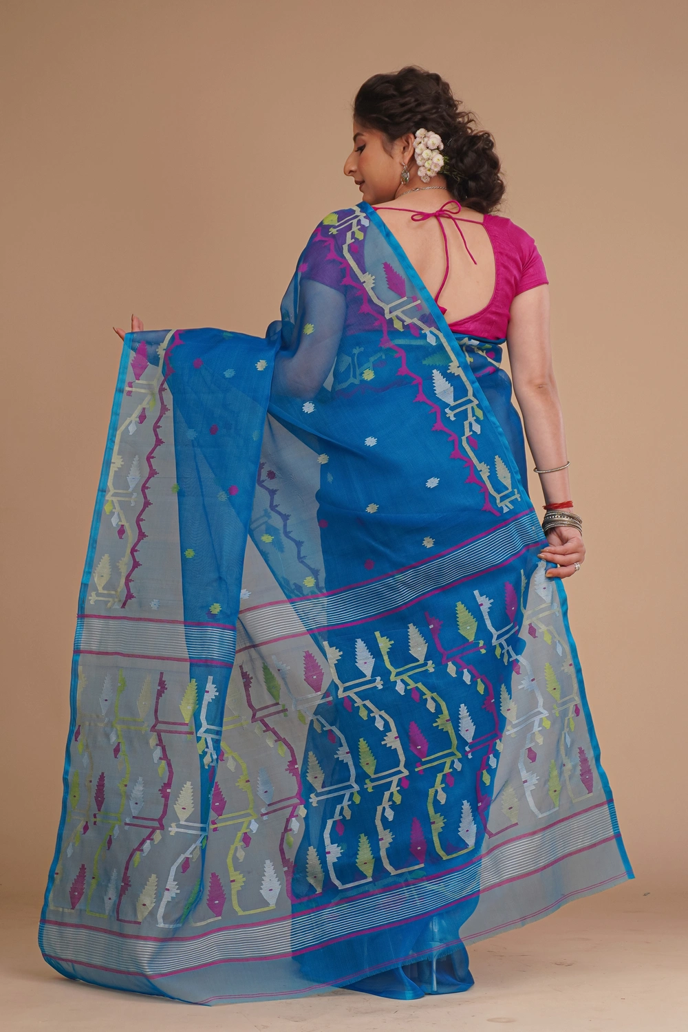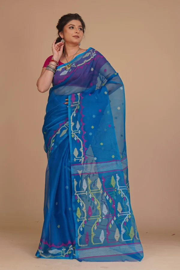Cobalt Blue Pure Muslin Jamdani Saree