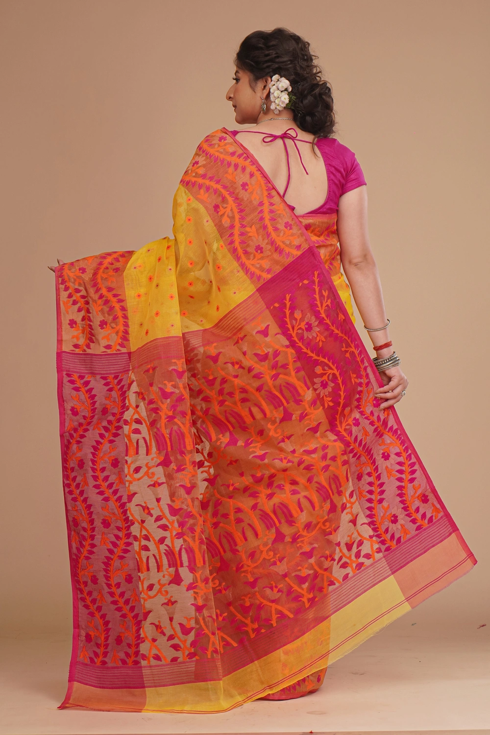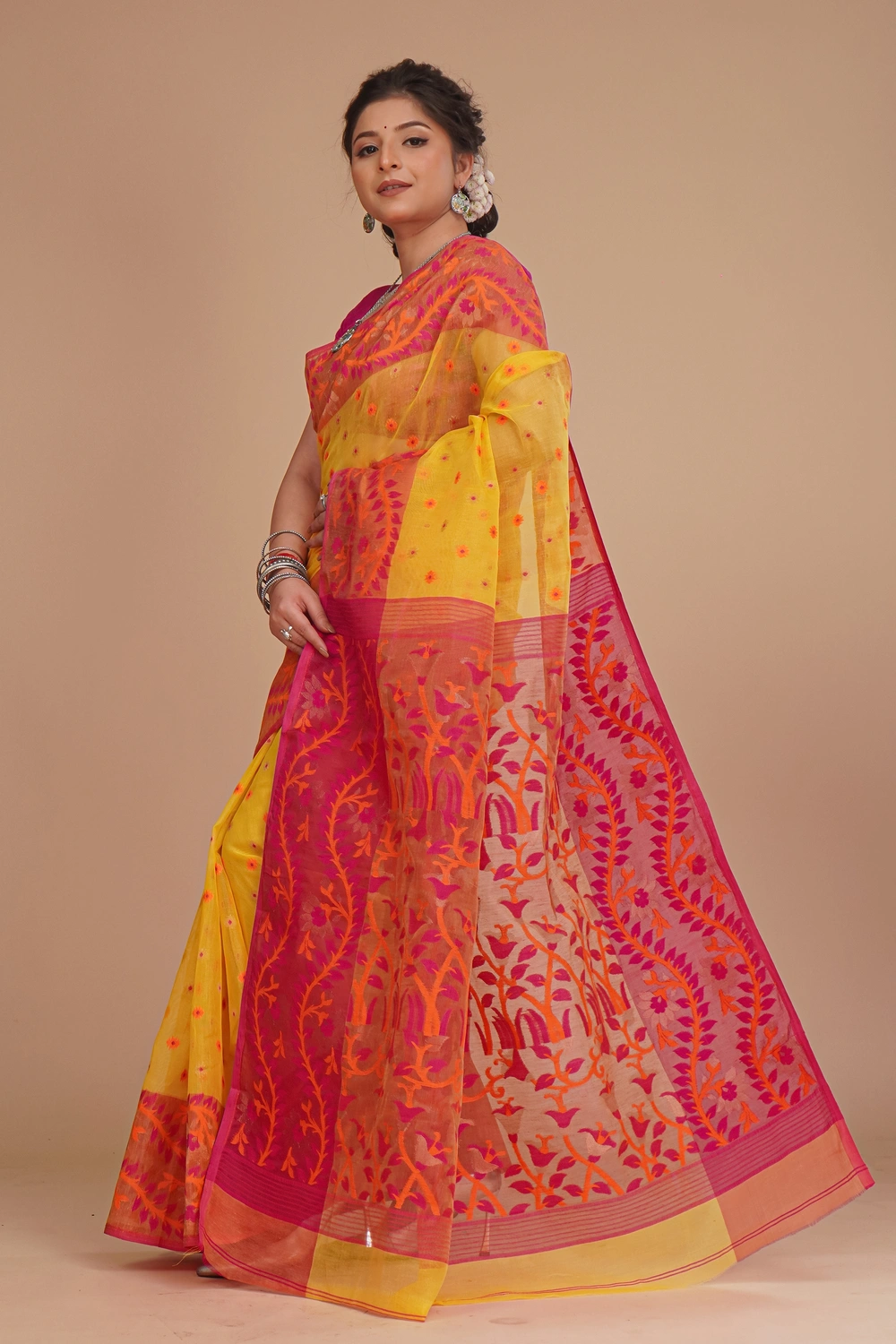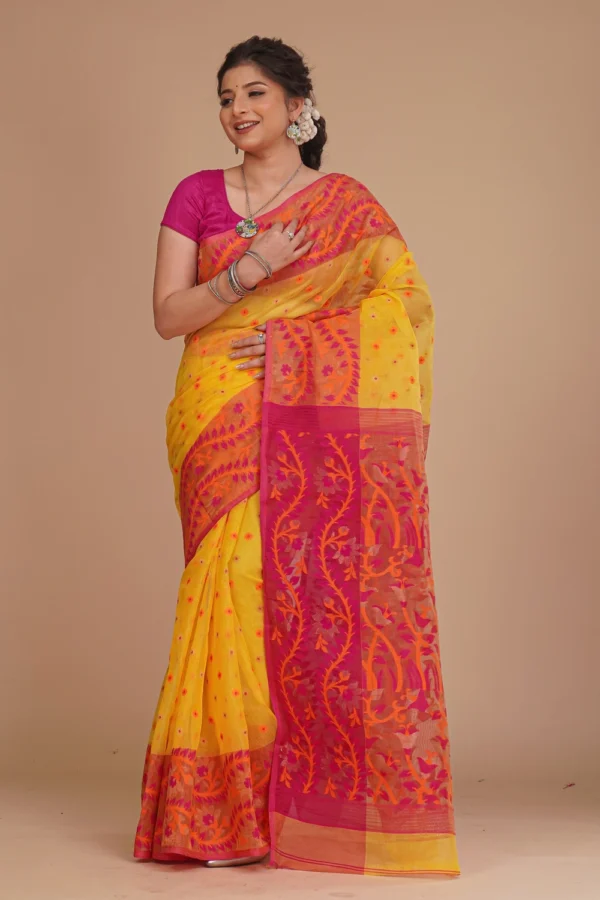 Mustard Yellow Dhakai Jamdani Saree