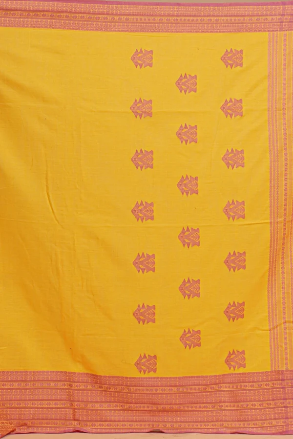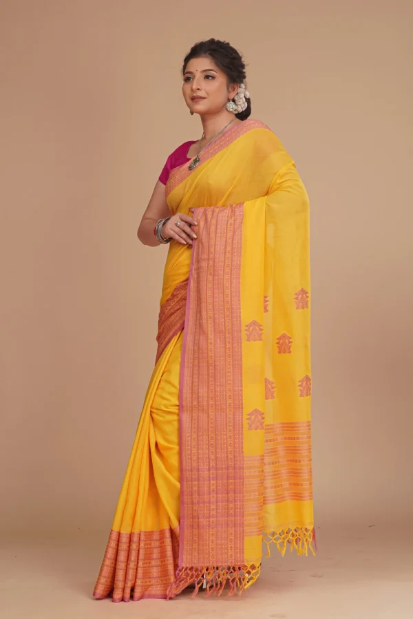 Bright Saffron Yellow Cotton Handloom Saree